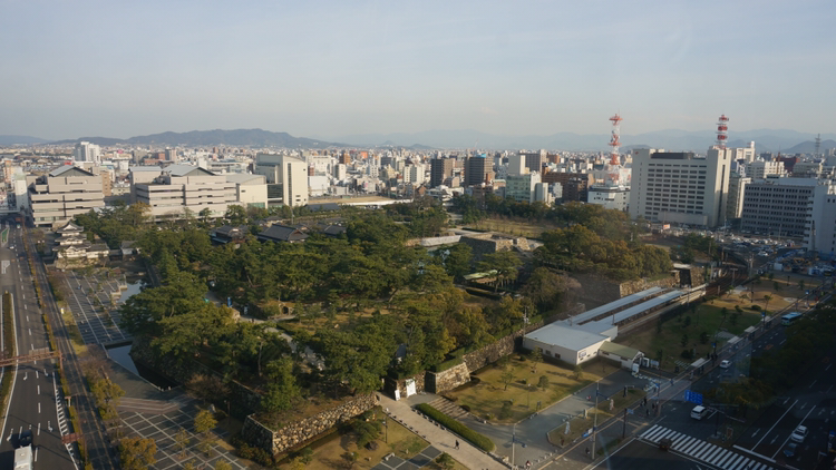 근세 성곽의 수성으로서는 최대 규모를 자랑하며 삼중 성루 [三重櫓], 문 등의 일부 건물과 석담, 해자가 현존하고 있고 성터 전체가 다마모 공원으로 정비되었으며 공원에서는 해마다 봄, 가을에 식목 시장 [植木市]과 국화전시회가 열린다고 한다.