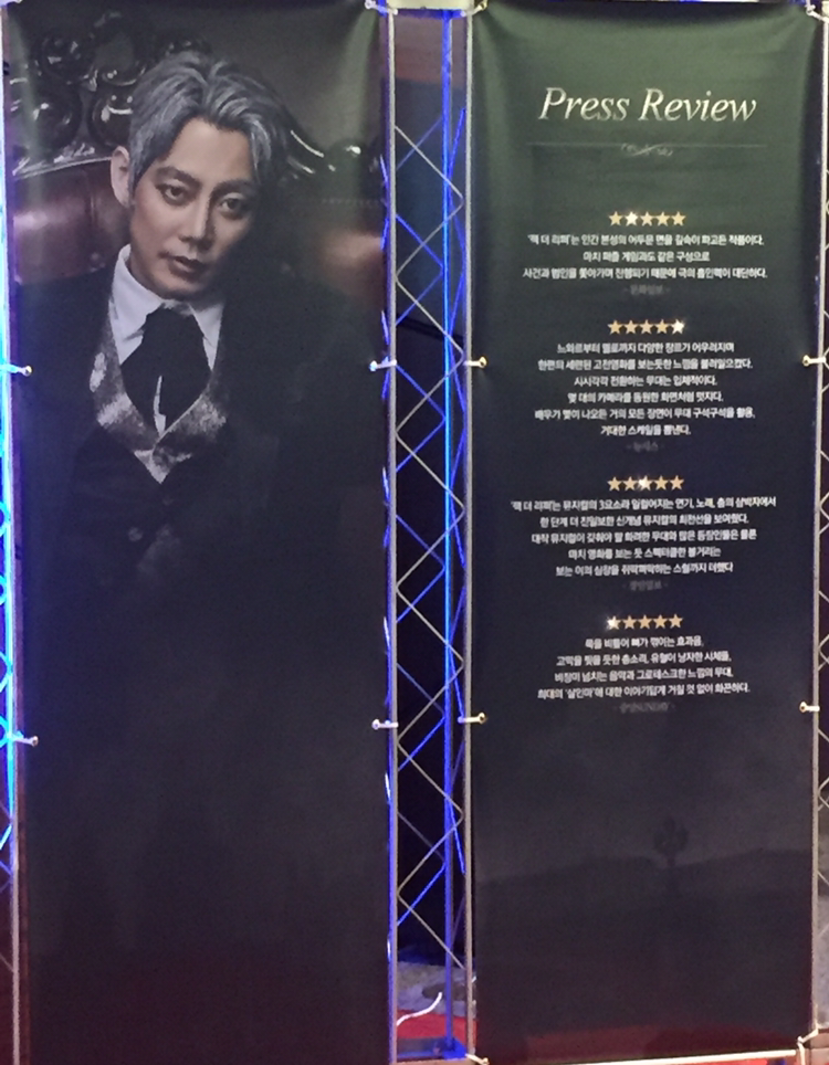 스토리의 소재 자체가 장기적출, 연쇄살인, 매춘 등 다소 무겁고 무서우면서도 인간의 본성을 자극하는 끔찍한 내용들이지만 화려한 무대 연출 및 장면 전환, 앙상블의 조화, 탄탄한 스토리, 배우들의 연기력까지 오랜만에 정말 뮤지컬 다운 뮤지컬을 본 것 같다!