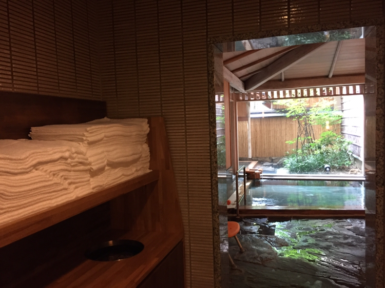 유카타 허리끈을 풀러 옷을 다시 고쳐 입고 온천으로 들어갔는데 이미 씻고 옷을 갈아입는 두 분이 있어 촬영은 포기하고 간단하게 샤워를 마치고 짧은 시간이었지만 내탕과 노천탕을 즐겼다!