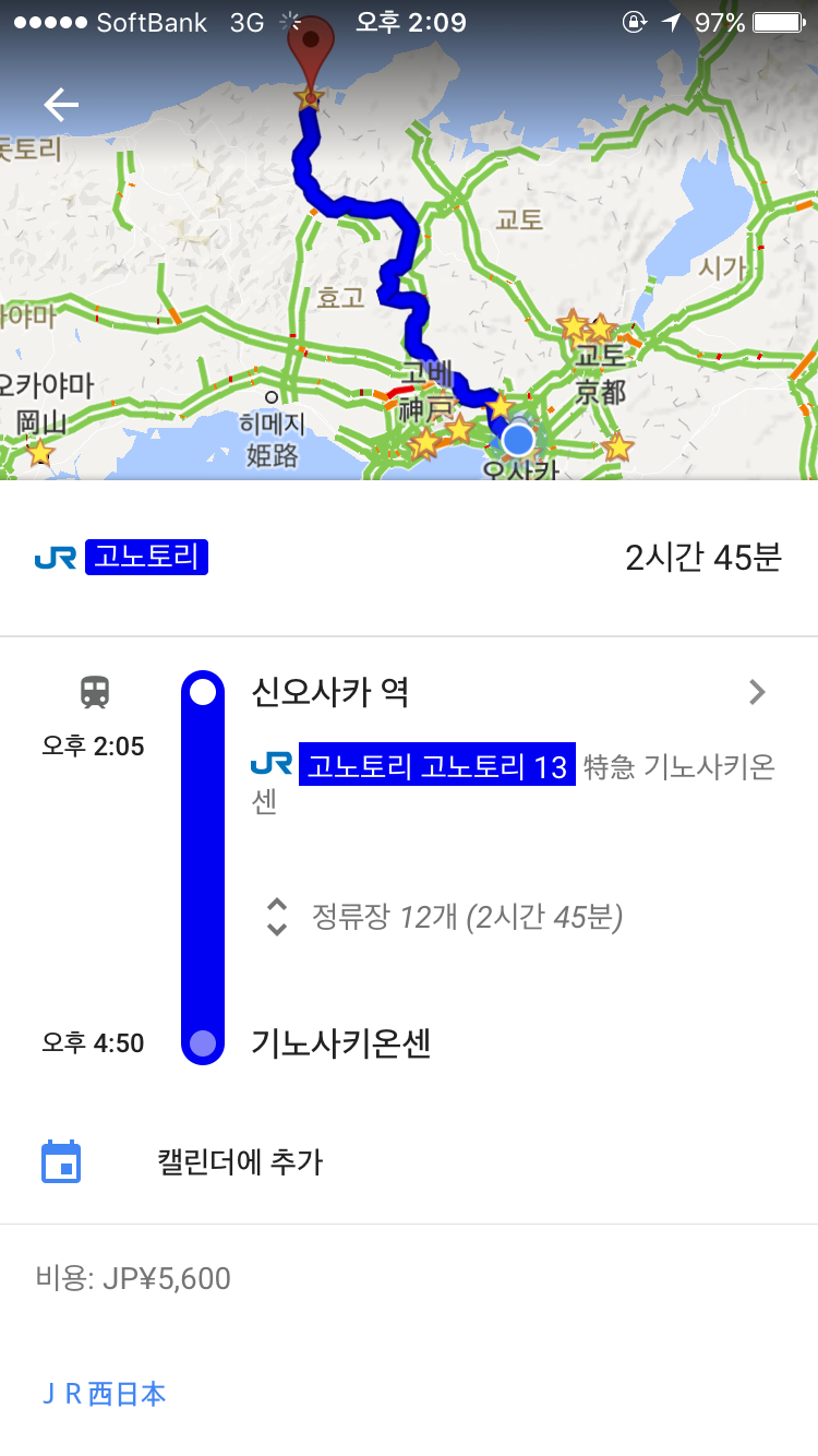 2. 신오사카역에서 기노사키 온센행 고노토리 탑승 (소요 시간 : 약 2시간 45분)