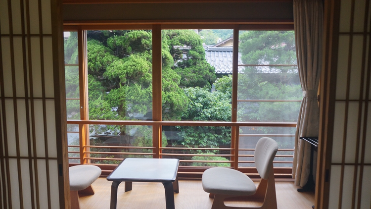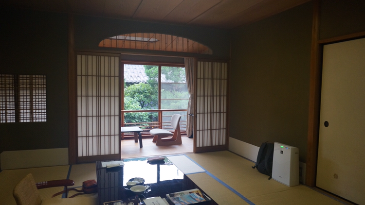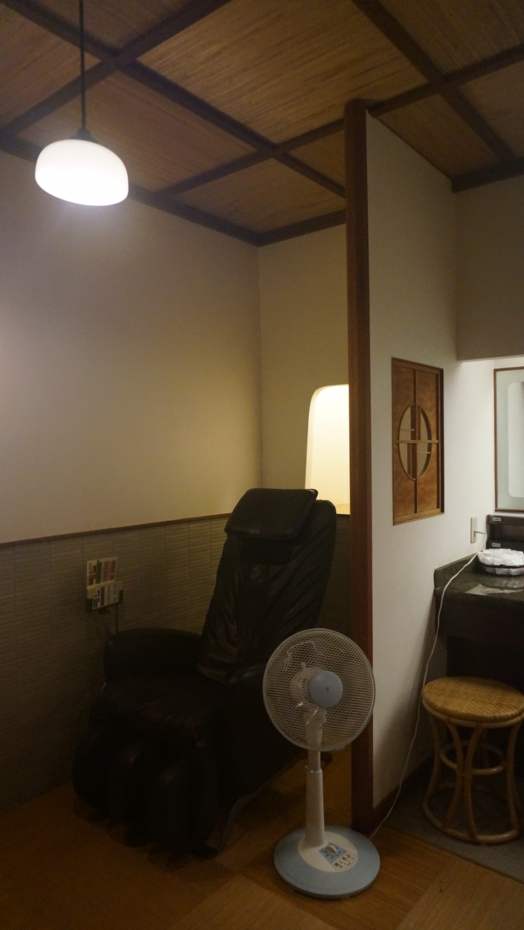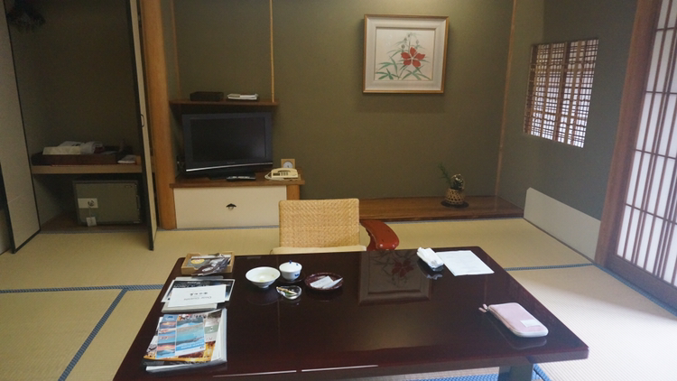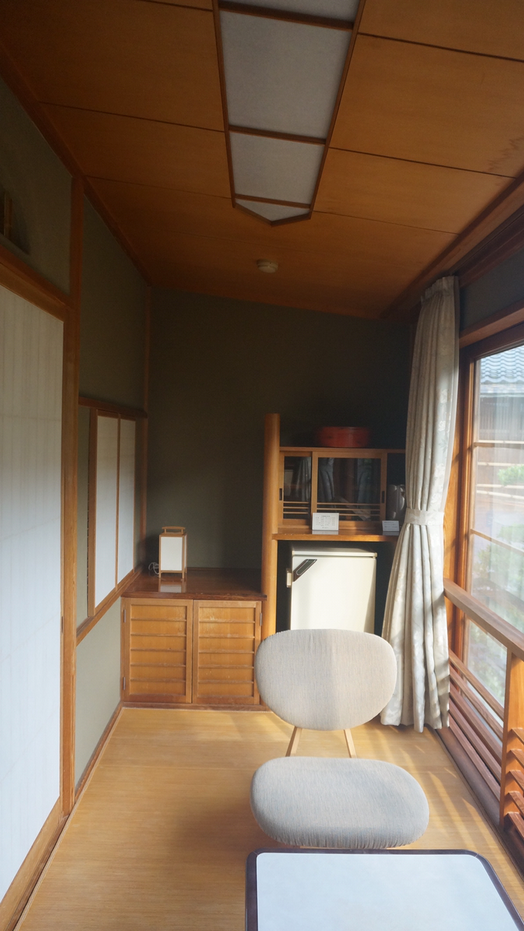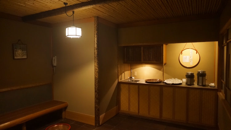 정면에 보이는 문을 열고 들어가면 의자와 테이블이 세팅되어 있고 옷장에는 유카타 2종과 타월, 옷걸이 등이 정리되어 있다!