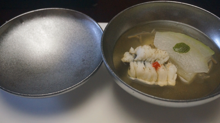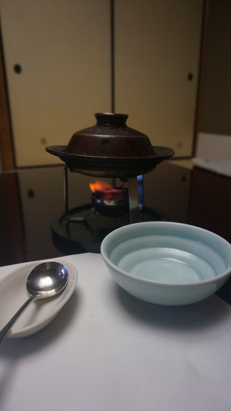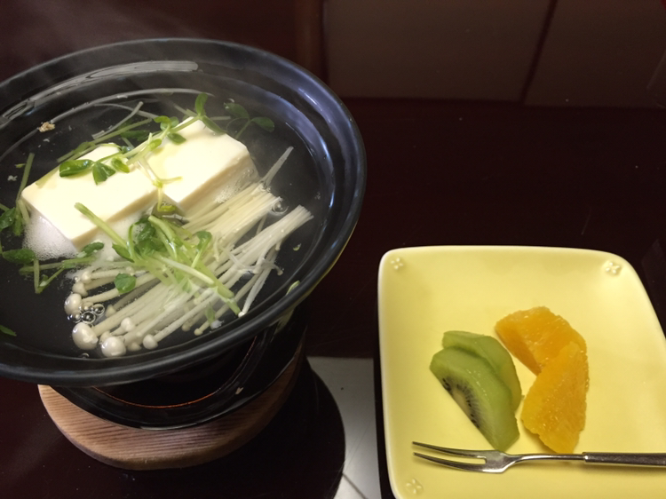 두부 요리가 나왔는데 불 붙이는 것을 깜빡하고 미소된장국을 가지고 온다고 해서 내가 알려줘 다시 돌아서 불을 붙여주고 나갔다!