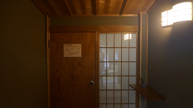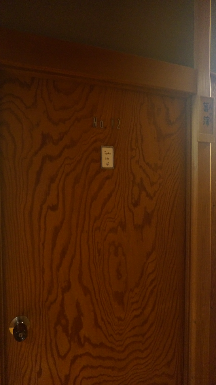 객실 문에는 숙박 고객의 이름 팻말이 붙어 있고 문을 열고 들어가면 벽면에 문이 하나 있고 그곳에 욕실이랑 세면 공간이 마련되어 있다!