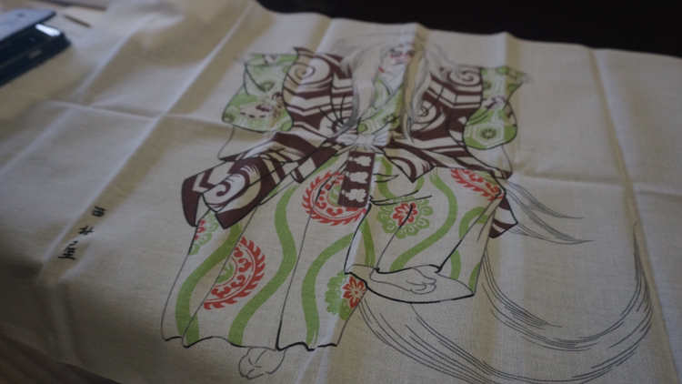 우선 일본어로 적힌 메뉴판도 다시 주길래 한 번 쓱 살펴보고 냅킨으로 준 천의 디자인이 독특하여 펼쳐놓고 사진을 찍으니 무릎 위에 펼쳐놓으면 된다고 가르쳐주며 기념품이니 가져도 된다 하길래 고맙다고 얘기함