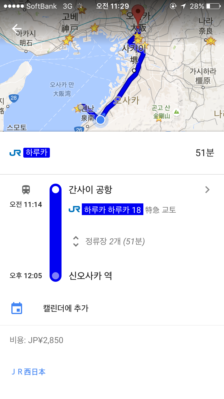 1. 교토행 하루카 탑승 후 신오사카역 하차 (소요 시간 : 약 50분 정도)