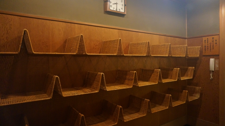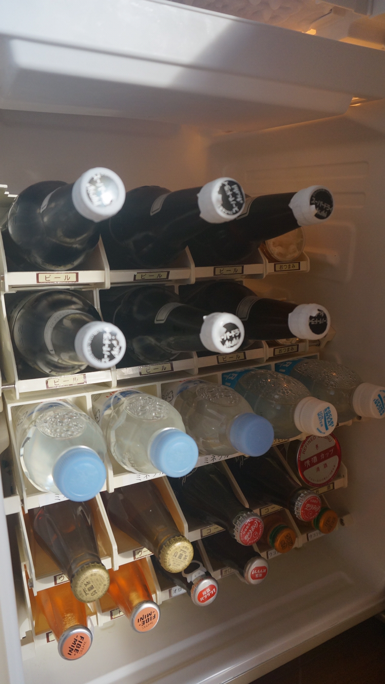여태 료칸이나 호텔 다시면서 병들을 세워놓은 것은 많이 봤어도 이렇게 칸칸이 눕혀놓은 곳은 처음 본다!