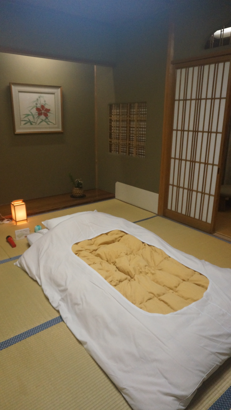 이곳은 유카타가 2가지 종류인데 하나는 객실에서 식사를 할 때 입는 것이고 하나는 외부 온천을 즐길 때 입는 것이다! 컬러나 디자인부터 차이가 크다!