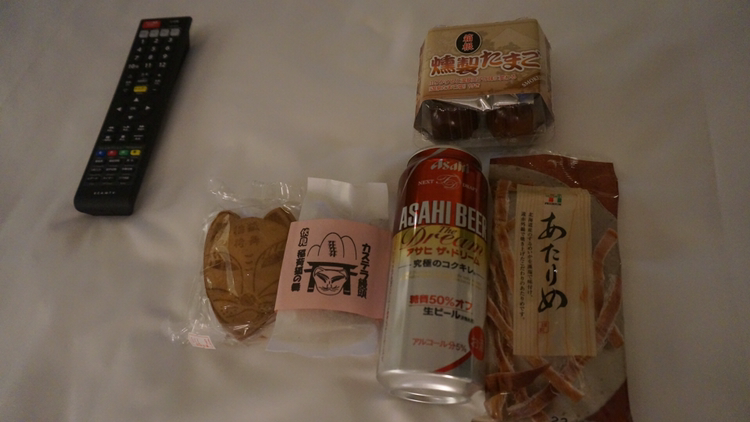 사놓고 못 먹은 맥주랑 오징어를 꺼내놓고 오늘 온천 마을에서 구매한 온천 달걀을 꺼내 들었다!