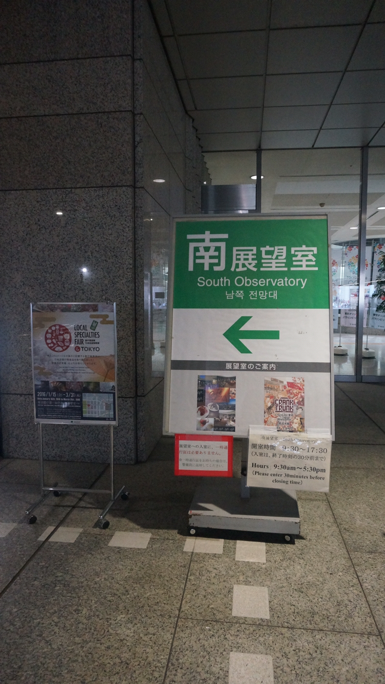 도쿄도청에 남, 북 전망대가 있다는 글을 검색을 통해 확인하고 낮에는 남쪽 전망대가 더 볼거리가 많다는 블로그 글을 본 다음이라 가방 안 검사 후 전망대로 올라가는 엘리베이터를 기다려 45층에서 내렸다!