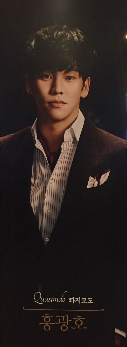 콰지모도 - 홍광호 / 에스메랄다 - 윤공주 / 그랭구와르 - 마이클 리 / 프롤로 - 최민철 / 페뷔스 - 오종혁 / 클로팽 - 문종원 / 플뢰르 드 리스 - 김금나