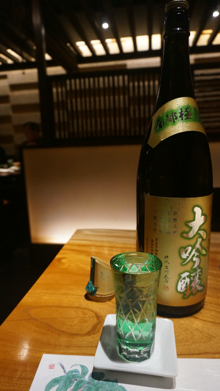 큰 사케 1병을 가지고 와서 어떤 종류인지를 보여준 다음 사진 찍겠냐며 테이블에 살짝 올려놓고 자리를 피해 주어서 편하게 사진을 찍고 다 되었다고 얘기하니 직원이 다시 자리로 와 잔이 꽉 차도록 사케를 따라 준다!
