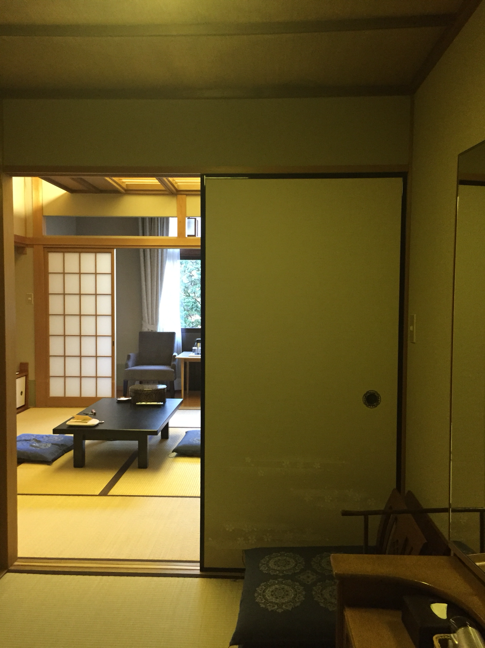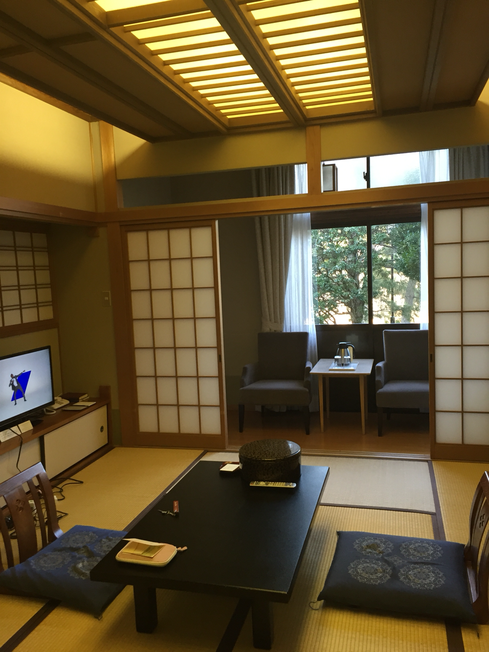 안내데스크부터 객실까지 직원이 짐을 들어주고 주변 안내까지 친절하게 해주며 드디어 객실 앞에 도착! 배정받은 객실은 1층에 일본식 다다미 객실 118호로 료칸 객실 규모보다는 작지만 전통과 5성급 호텔이라는 이름값으로 이곳도 1박 숙박료는 비싼 편이다.