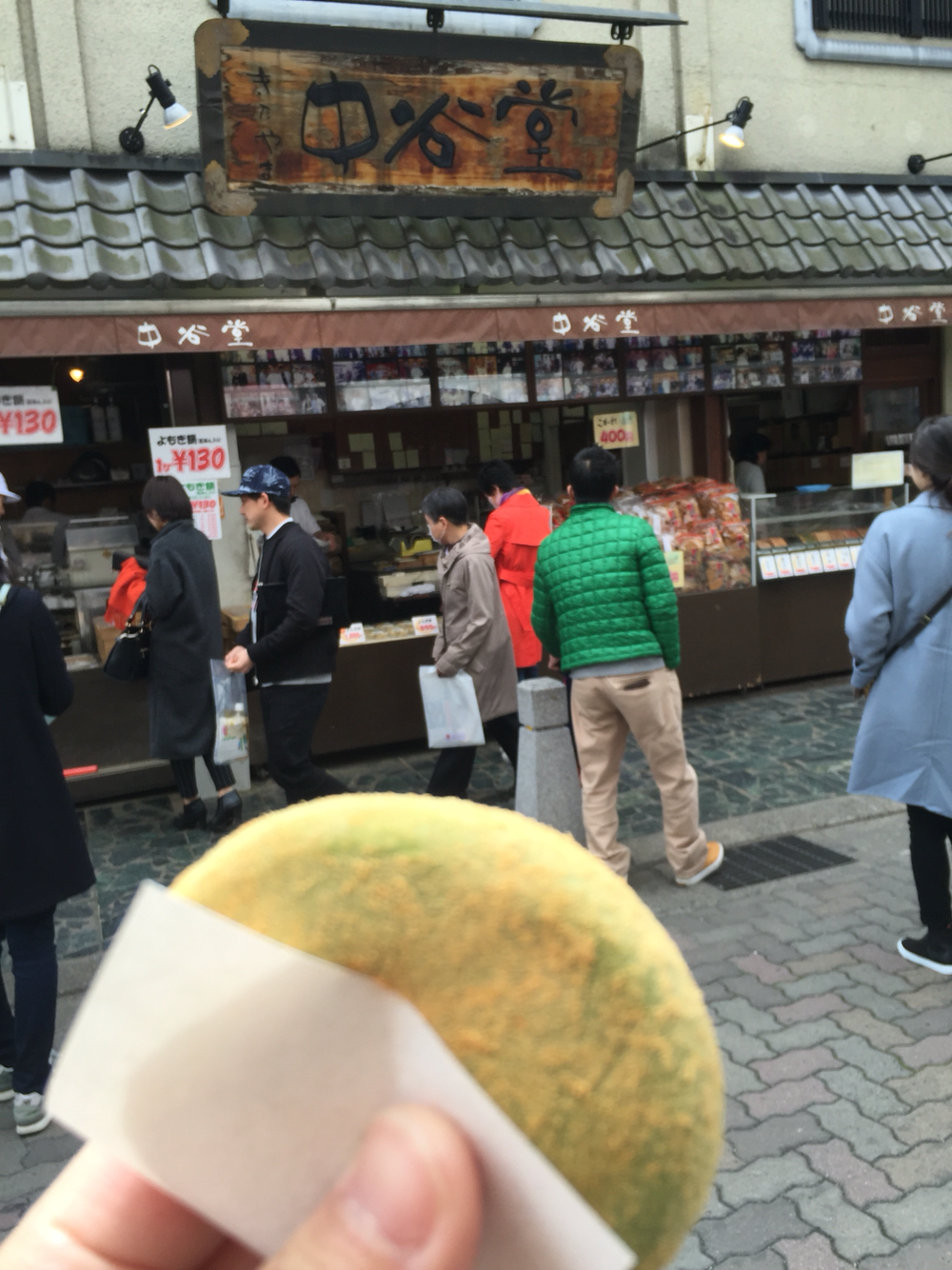 나라마치 가는 쪽 아케이드 입구에는 떡집이 있었는데 사람들이 제법 많이 있길래 떡 하나를 사서 집어 들고 맛을 보니 쫄깃함이 아주 딱 먹기 좋은 수준이다. 유부우동 가게도 같이 있었는데 이곳은 대기줄이 길어 과감히 패스~!