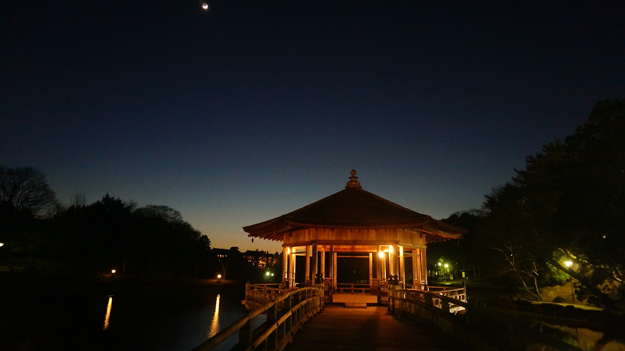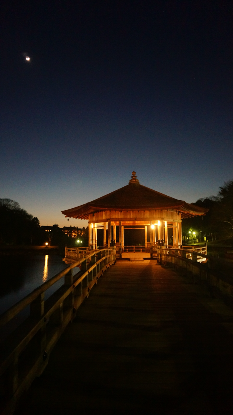 나라 공원 쪽으로 걸어가는 길에 호수가 있는데 호수에 비친 호텔 전경이 한 폭의 그림 같은 모습이다!