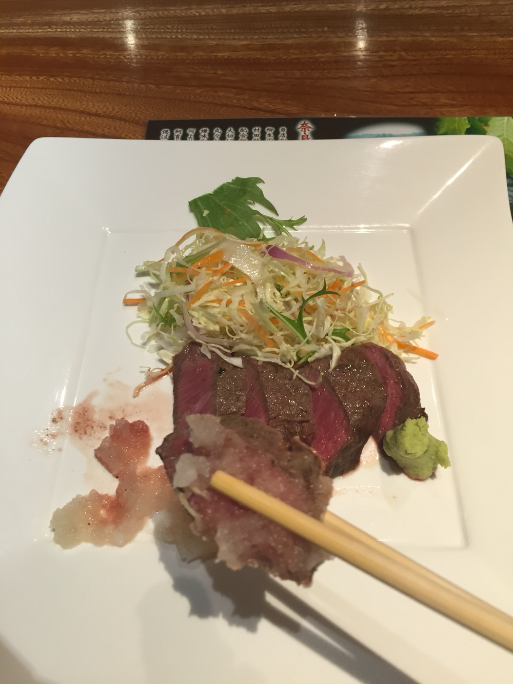 전망대를 충분히 둘러본 다음 저녁을 먹기 위해 긴테쓰 나라역 아케이드를 둘러보다가 초입에 마음에 드는 가게가 있어 안으로 들어가 직원에게 1명이라고 얘기한 다음 안내받은 자리에 앉았다.
