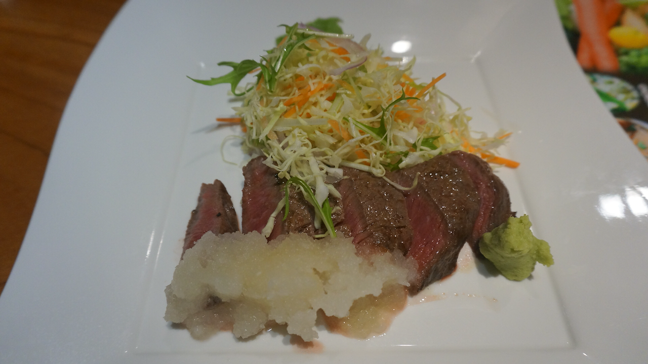 모둠회를 다 해치우고 자리에 있으니 다음으로 주문한 스테이크가 나왔다! 굽기는 미디엄 레어 정도~