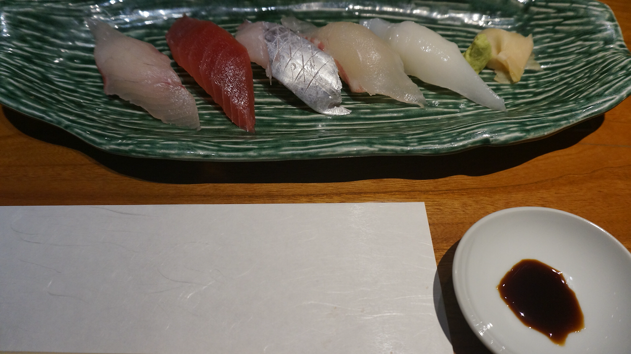 그리고는 사케 1잔을 추가로 주문하고 모둠 초밥 한 접시랑 우메보시 오차즈케를 시켰다!