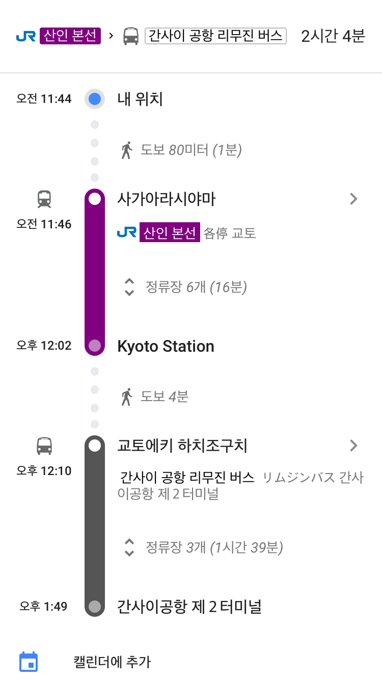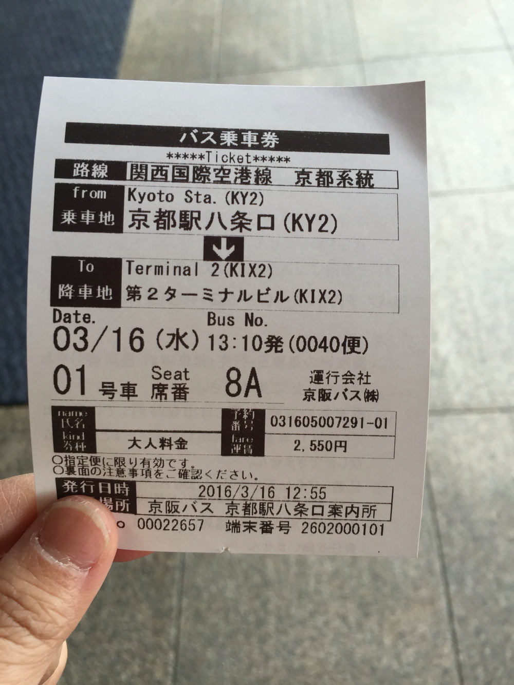 교토역에서 교토에키 하치조구치로 이동 후 간사이 국제공항까지 리무진 버스로 이동