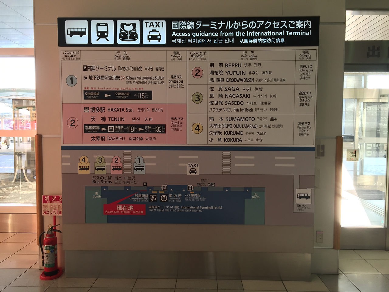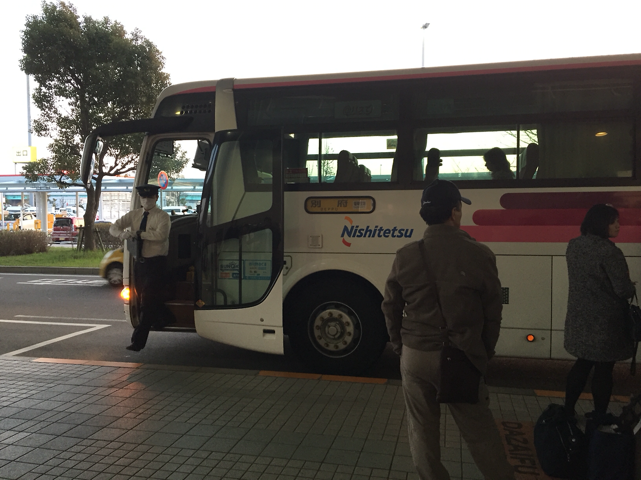 후쿠오카 국제공항 국제선 버스 터미널에서 벳부행 고속버스 탑승