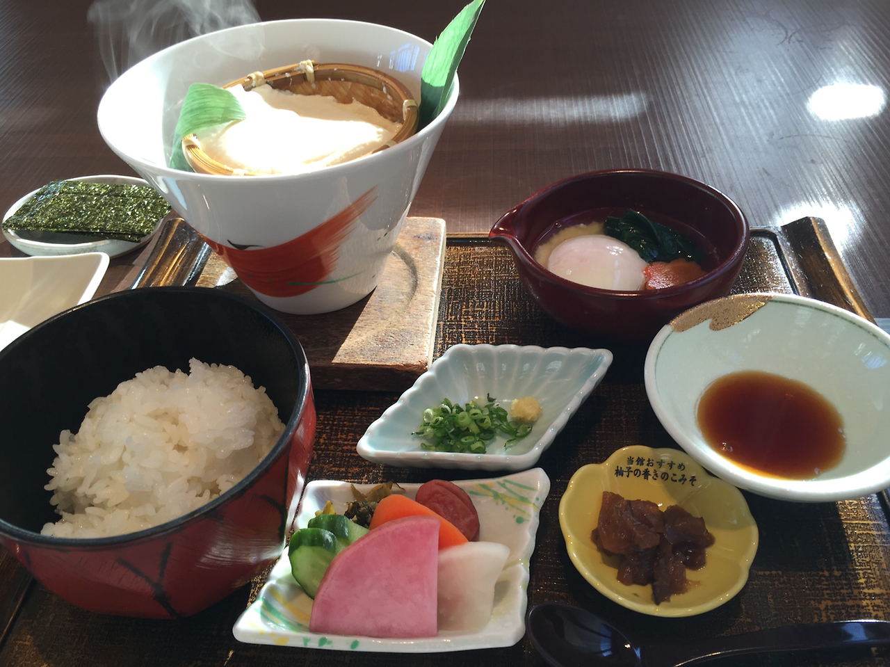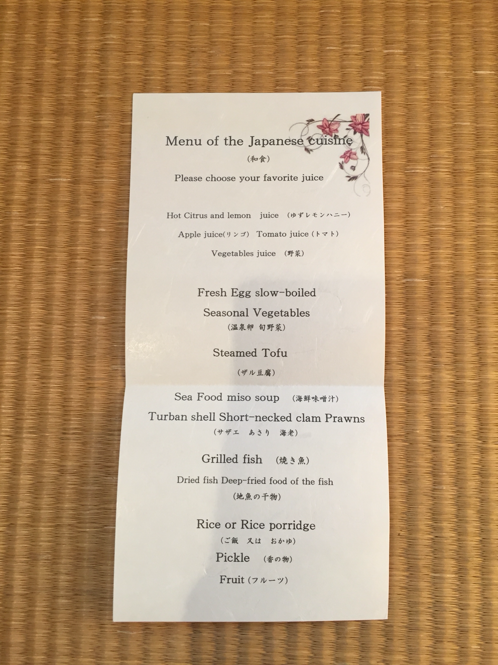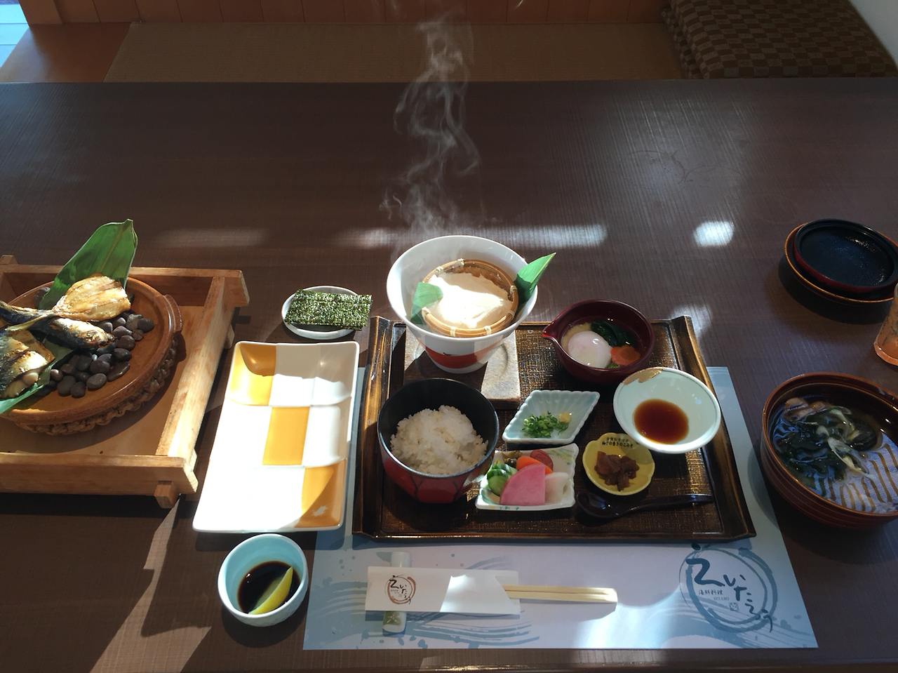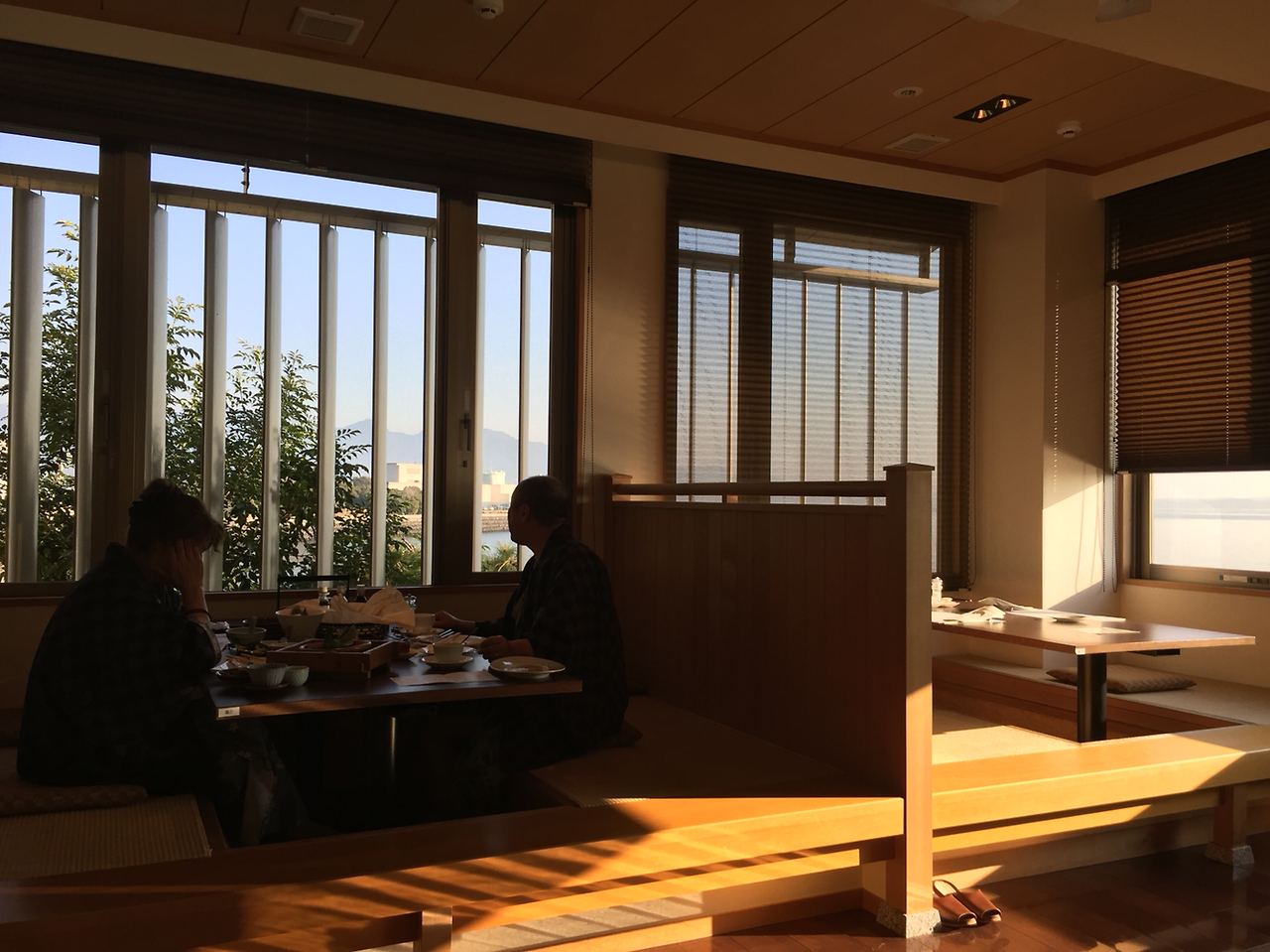 약기운에 쓰러져 자다가 새벽에 일어나 대욕장을 가려던 계획이 수포로 돌아가고 8시에 일본식 아침 식사 예약을 해놔서 부랴부랴 세수만 하고 유카타를 벗고 평상복으로 갈아입고 레스토랑이 있는 2층으로 향했다!