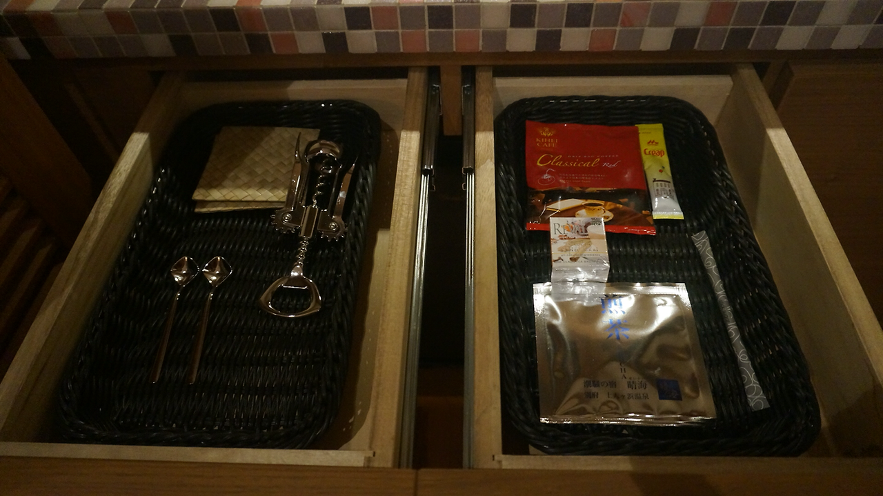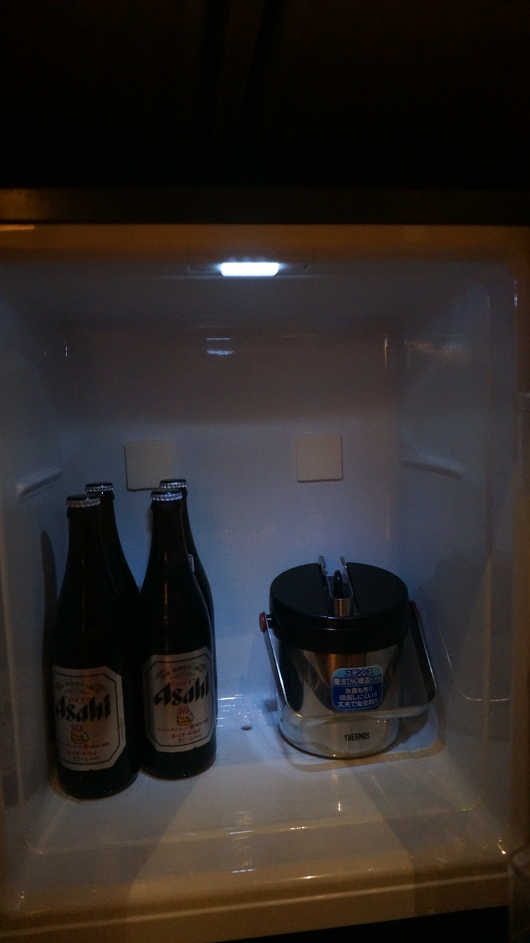 미니바에는 통 안에 얼음이 채워져 있었고 욕실과 노천탕에는 바로 온천을 즐길 수 있도록 물을 받고 있었다!