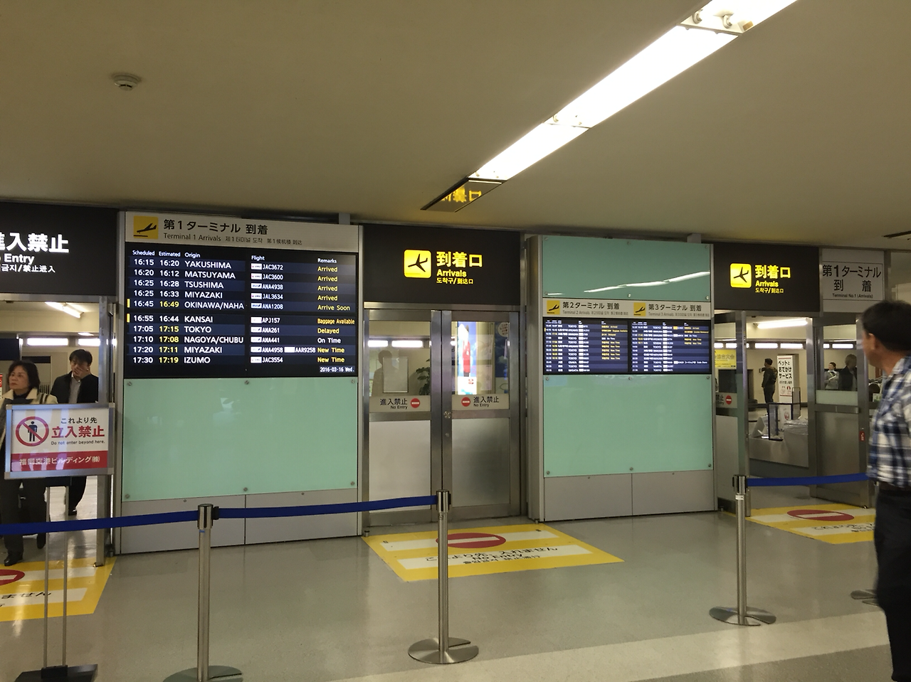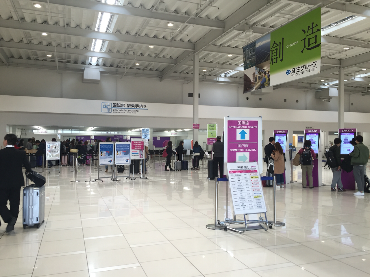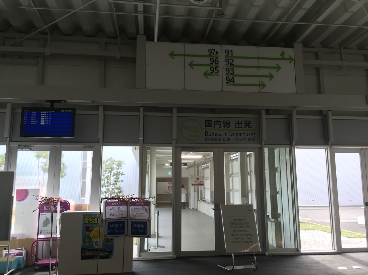 오사카 간사이 국제공항 제2터미널에서 하차 후 규슈 후쿠오카 국제공항으로 피치항공 이용 이동