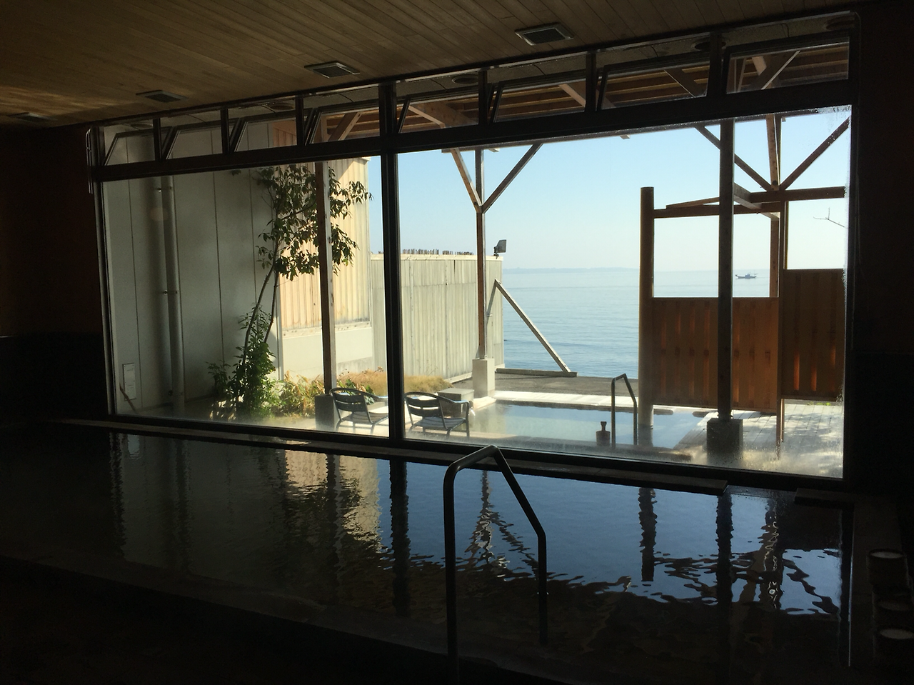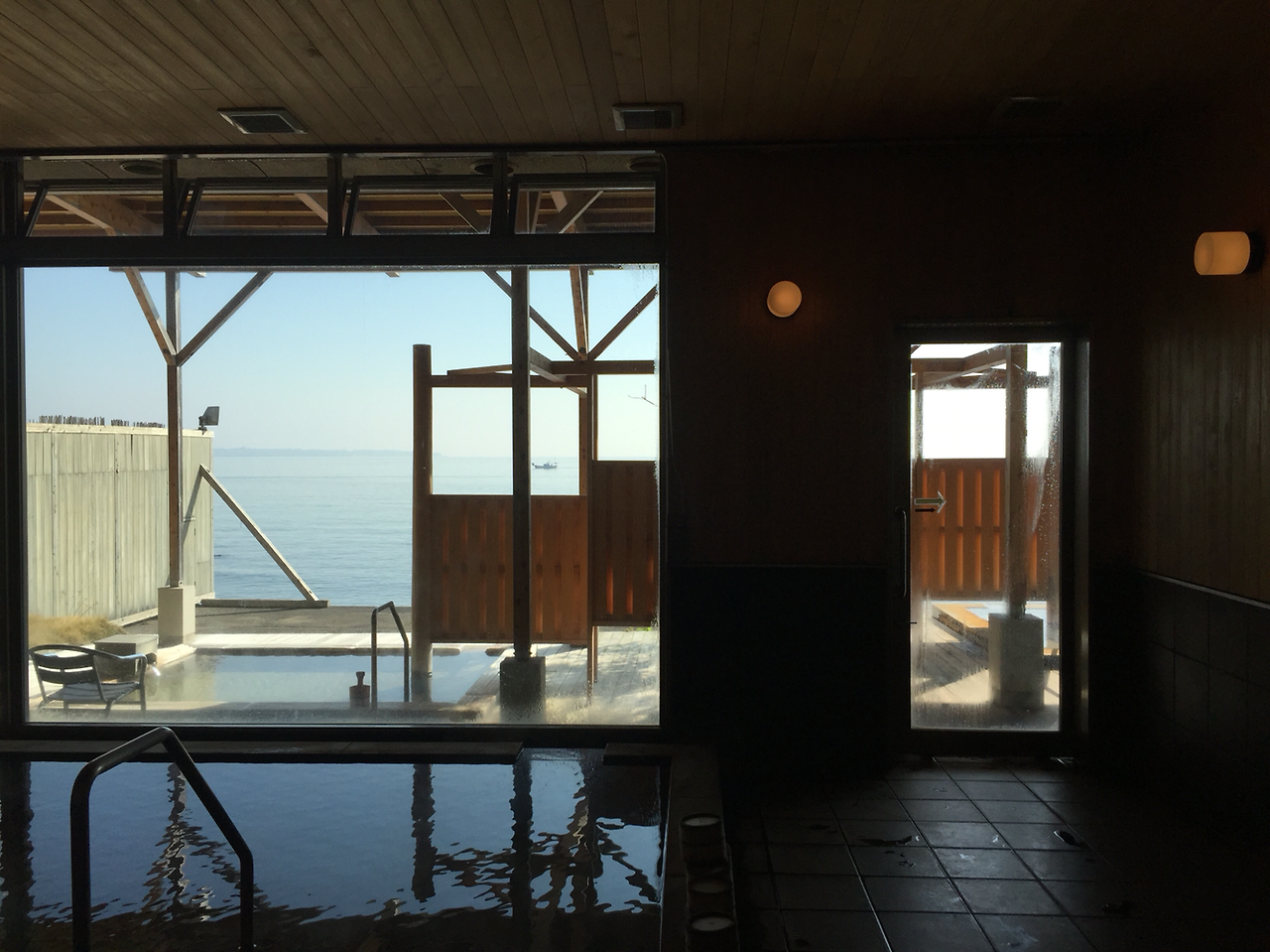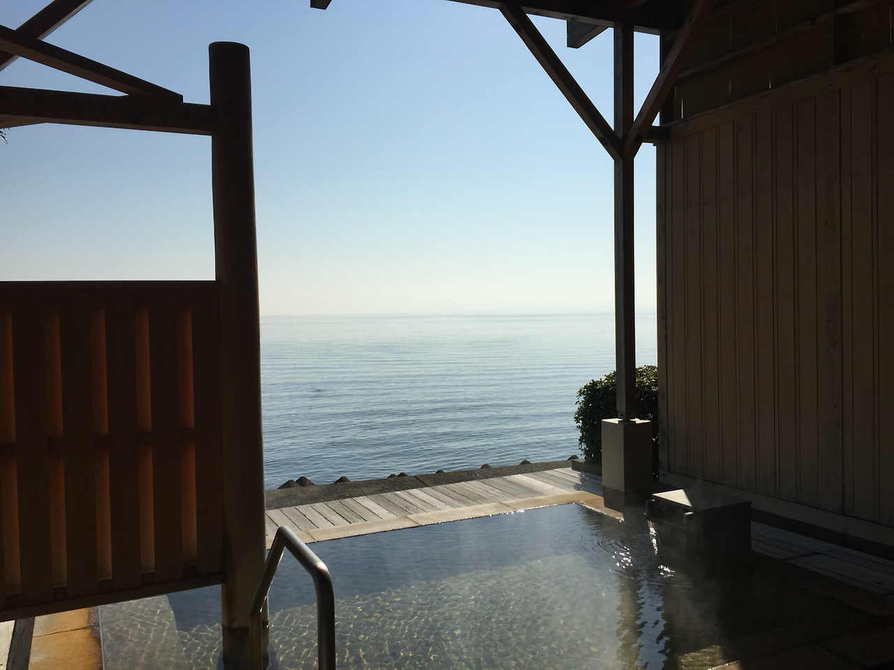 노천탕에서 바로 바다가 보이니 그보다 더 좋을 수가 없었다!