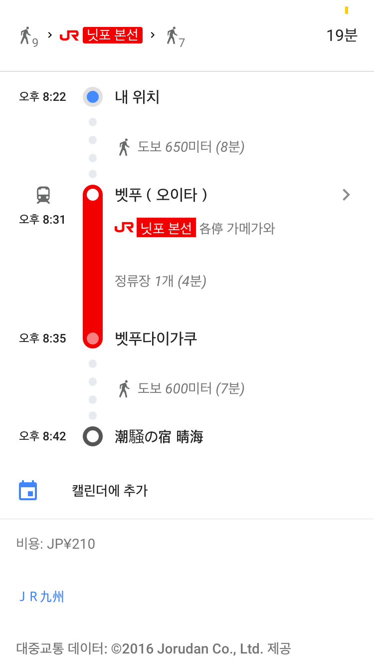 결국 오이타역에서 다시 거꾸로 이동 교통비 210엔