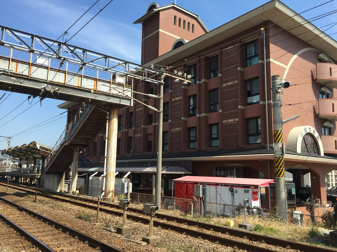 벳부다이가쿠역에서 내려 도보로 7분 정도 걸려 Shiosai no Yado Seikai 호텔식 료칸 도착