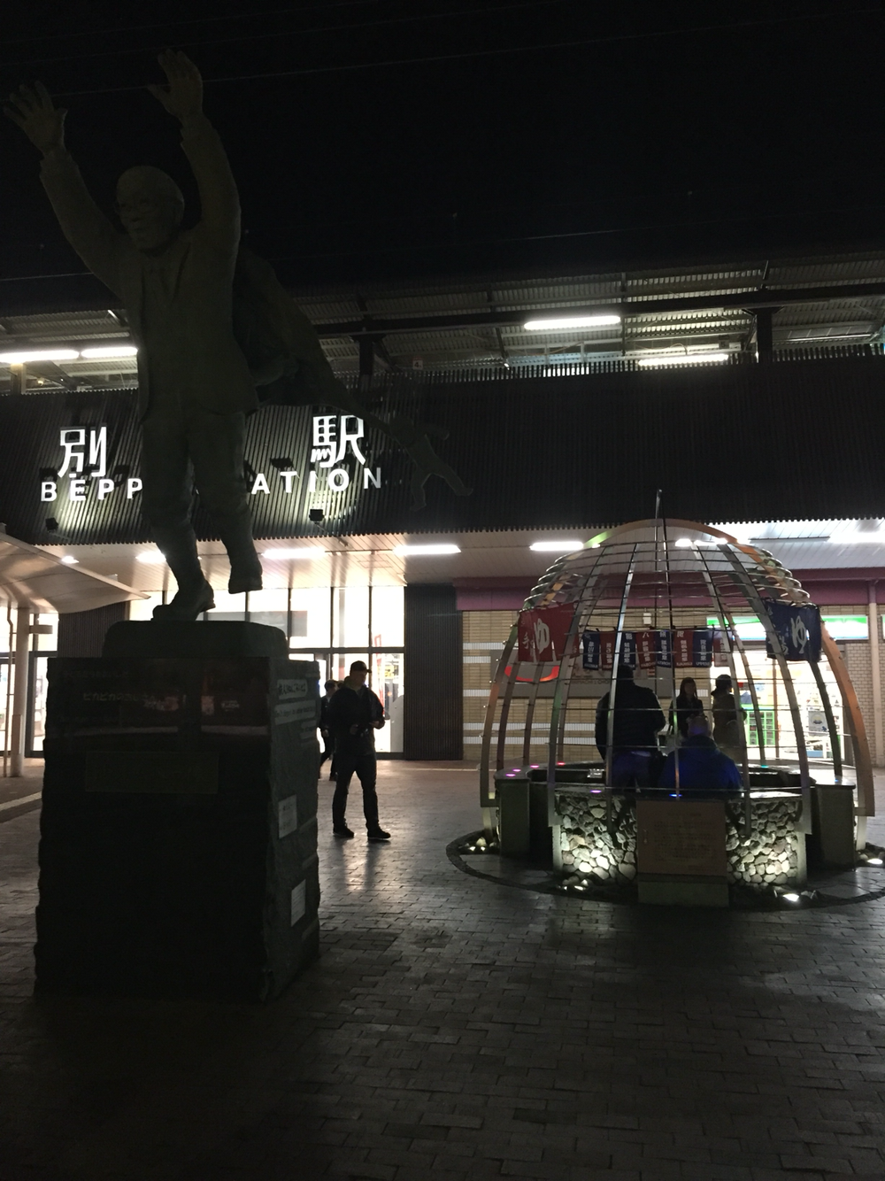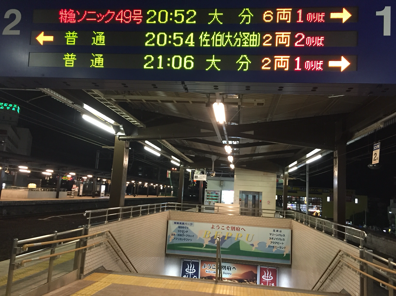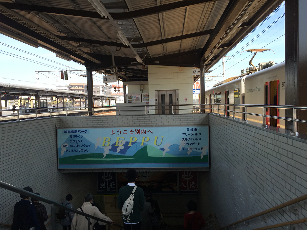지옥 온천 순례를 호텔에서 한 번에 갈 수 있는 방법이 없어서 우선 벳부 다이가쿠역으로 다시 걸어간 다음 벳부역으로 이동했다!