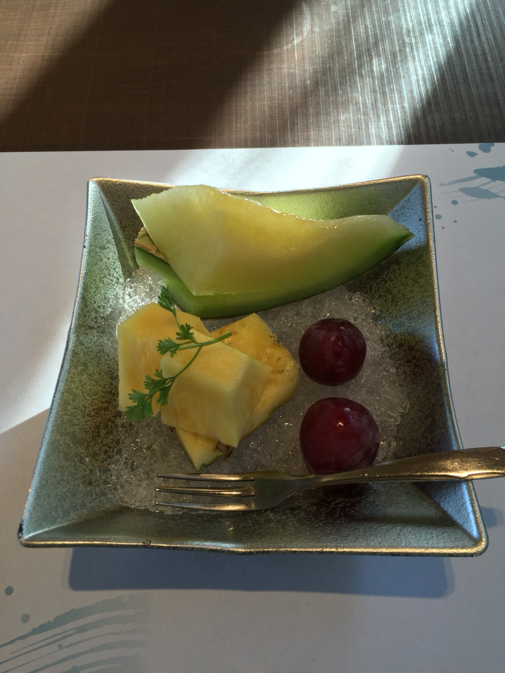 후식으로 나온 멜론이랑 포도, 파인애플은 밑에 얼음을 깔아놔서 차갑게 신선함을 느끼며 먹을 수 있어 좋았다!