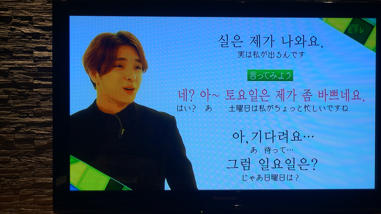 객실에 들어왔을 때부터 계속 잔잔한 음악이 재생되고 있었는데 멈추고 TV를 켜서 채널을 돌리다 보니 FT아일랜드 멤버들이 한국어를 가르치더라~!