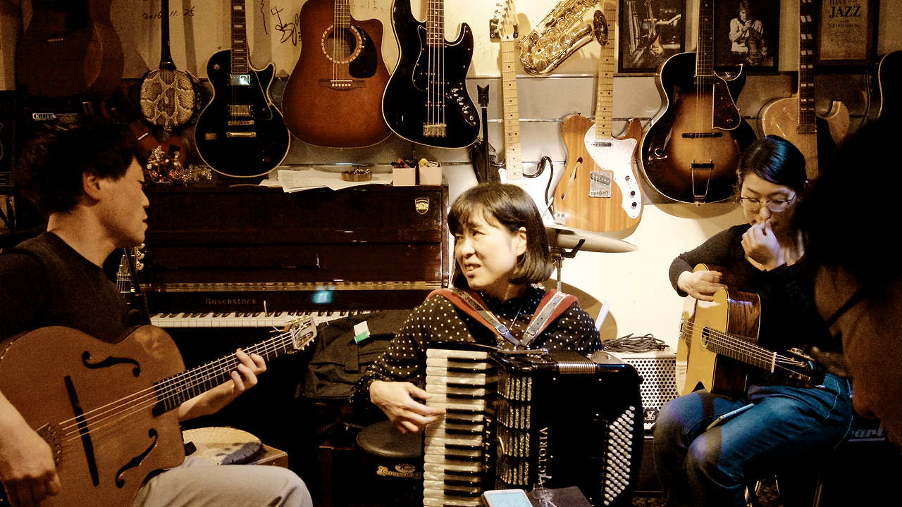 분주했던 아침. 급한 일들을 무사히 마치고 부랴부랴 시간을 살짝 넘겨 도착한 Mash Records에는 이미 몇몇의 연주자들이 모여 있었다. 각자의 악기를 품에 안고 무언가 서로 알아들을 수 없는 일본말로 대화를 나누는 사람들과, 나처럼 아는 사람 없이 혼자 왔는지 어색한 표정으로 고개를 떨구고 있거나 두리번거리며 좌우를 살피는 사람들. 개중 어색하게 두리번거리다가 나와 눈이 마주친 한 친구는 나 또한 일본인이 아니란 걸 알아챘는지 자신을 대만에서 온 기타리스트라고 소개하며 수줍게 인사했다. 동병상련이랄까? 반가운 마음에 영어로 이런저런 대화를 주고받아보니 자기는 오늘 워크숍을 진행하는 기타리스트 Denis Chang의 제자이며 일본에는 그와 함께 왔다고 한다. 결국 이 자리에 혼자 온 외톨이는 나 하나뿐이었다. 가엾어라 나 자신!