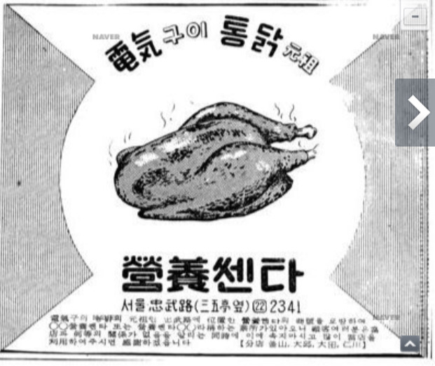 1963년 한 해 동안 경향신문에 전기구이통닭 영양쎈터 광고가 돌출광고 형태로 24회 등장하면서 거의 처음으로 전기구이통닭 광고가 나온 것으로 보인다. 이후 1965년 12월 크리스마스를 겨냥한 미니광고를 하면서 본격적인 전기구이통닭의 시대를 연다. 전기구이통닭은 영양식으로도 그리고 부잣집의 간식으로 선망을 받으면서 대중의 인기를 얻게 됐고 경쟁도 치열해졌다.