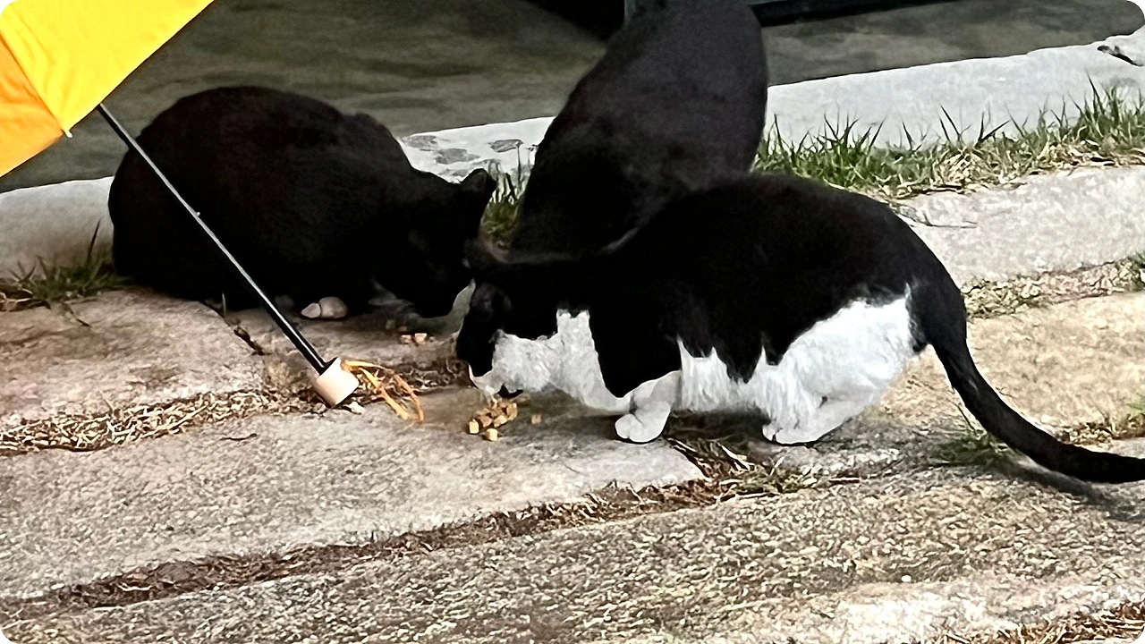 같은 급식소에서 엄마냥이가 모습을 드러냈고, 그 뒤로 조용히 따라오는 루나도 보였습니다.