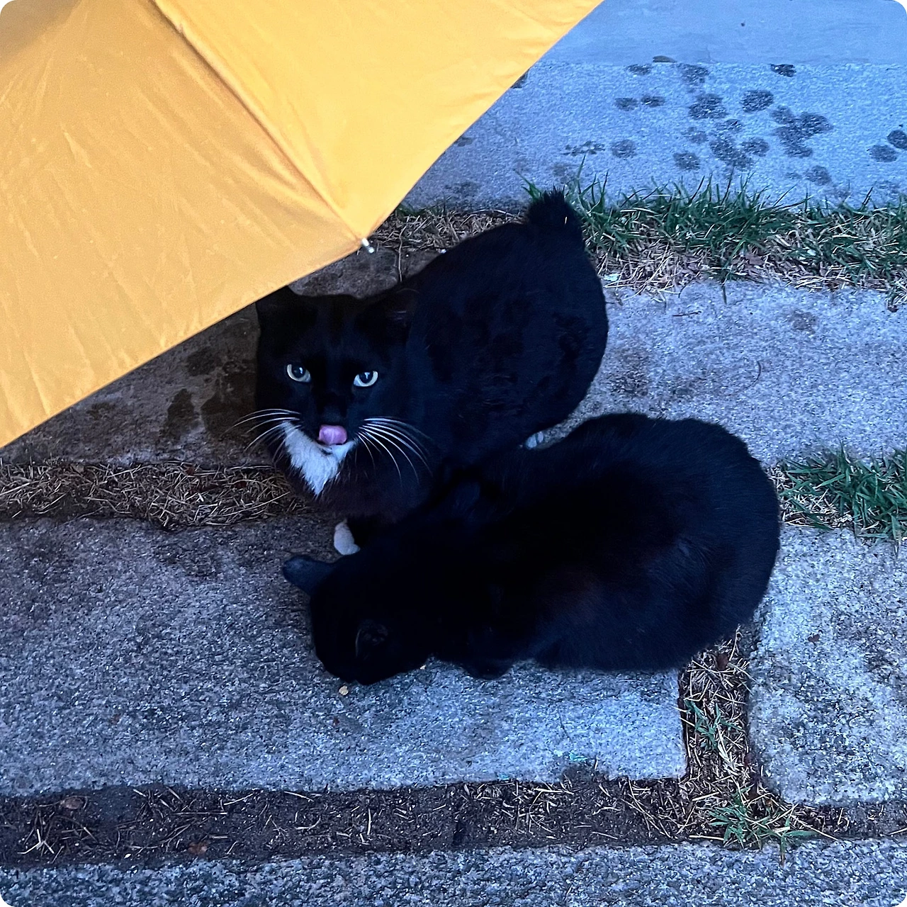 루루와 엄마냥이는 근처 건물 지붕 아래로 향했습니다.
