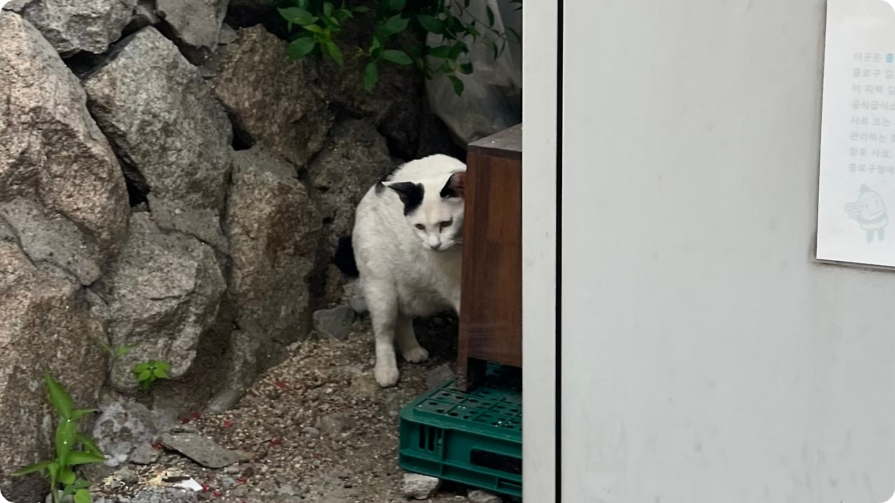 우리 동네 고양이 중 저와 지리적으로 가장 가까운 고양이는 억울이와 테리입니다. 억울이의 텃밭이라 불리는 전용 화장실이 제가 일하는 사무실 일층에 있어서, 자연스럽게 자주 보게 됩니다. (테리는 다음 글에서 소개할게요!)