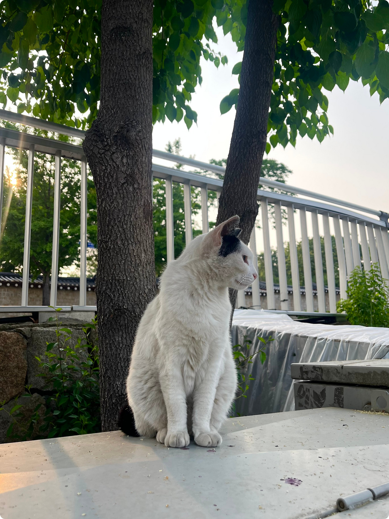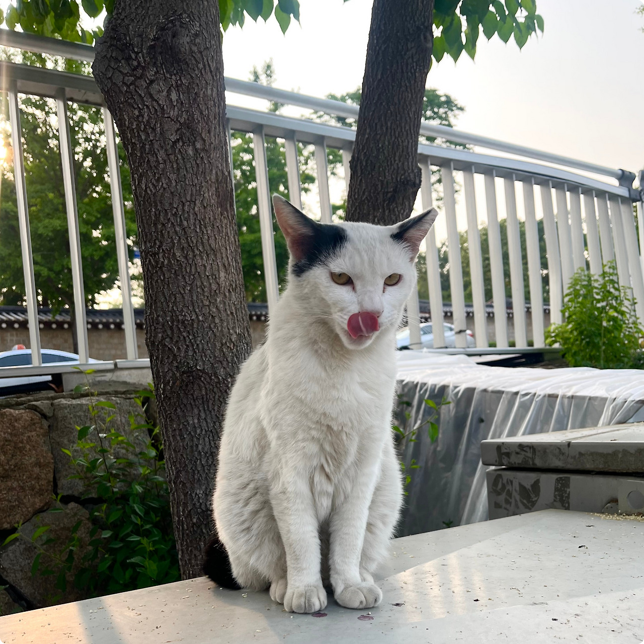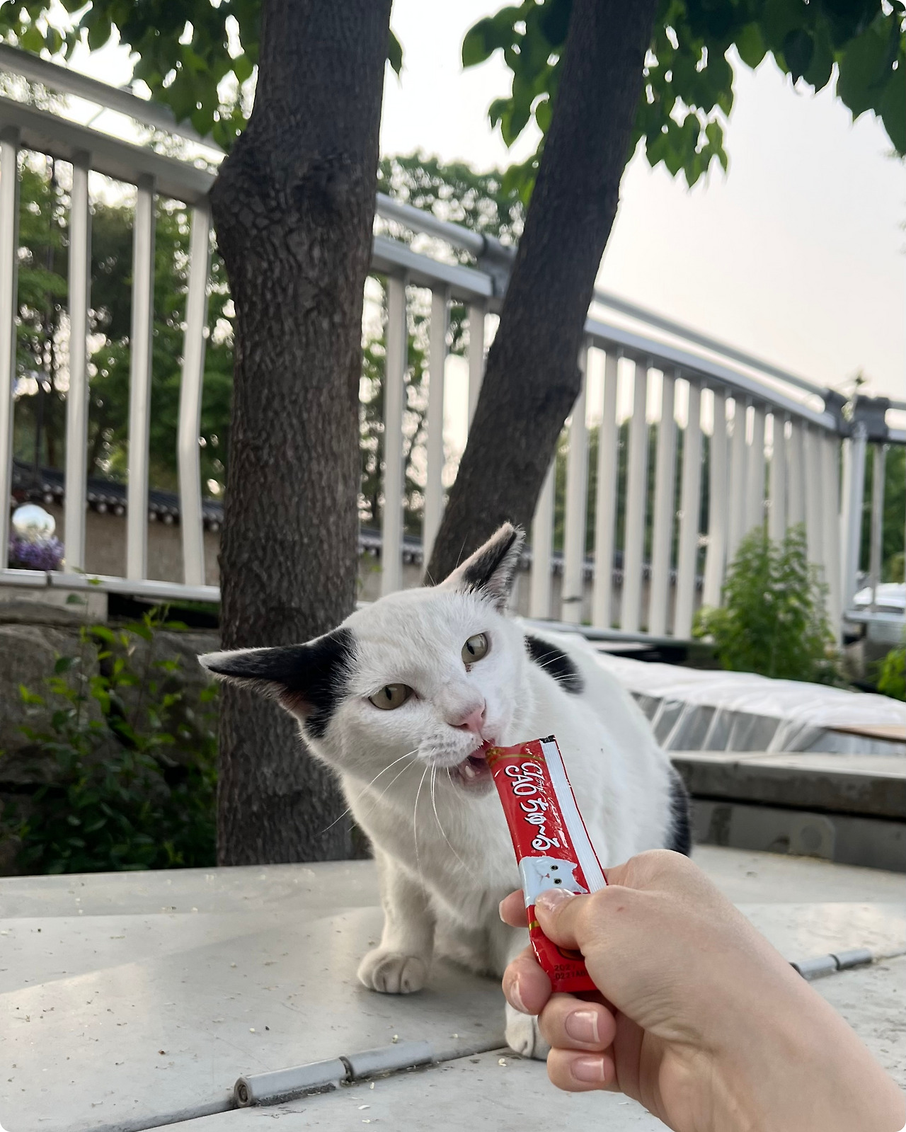 고민은... 자주 보는 인기 많은 억울이가 가끔 위생적이지 않은 방법으로 간식을 먹는다는 점입니다. 억울이가 쉬는 자리 주변 바닥에 츄르가 짜여 있거나, 개미들이 모이는 곳에 건식 간식이 놓여 있기도 합니다. 누가 그러는지는 잘 모르겠습니다. 주변 관광객일 수도 있고, 저처럼 인근에서 직장을 다니는 사람일 수도 있겠지요...