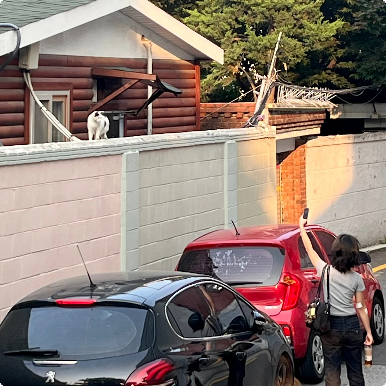 억울이는 사람도 잘 알아봅니다. 저를 보면 멀리서도 야옹! 야옹!하며 달려오죠. 제가 키우던 옛 반려견이 떠오를 만큼 개냥이 매력을 뽐냅니다. 간식이 있든 없든 다가와서 눈높이를 맞추려 제 키만큼 높은 곳에 올라와 쳐다봐주기도 하니, 요즘 특히 더 귀엽게 느껴집니다.
