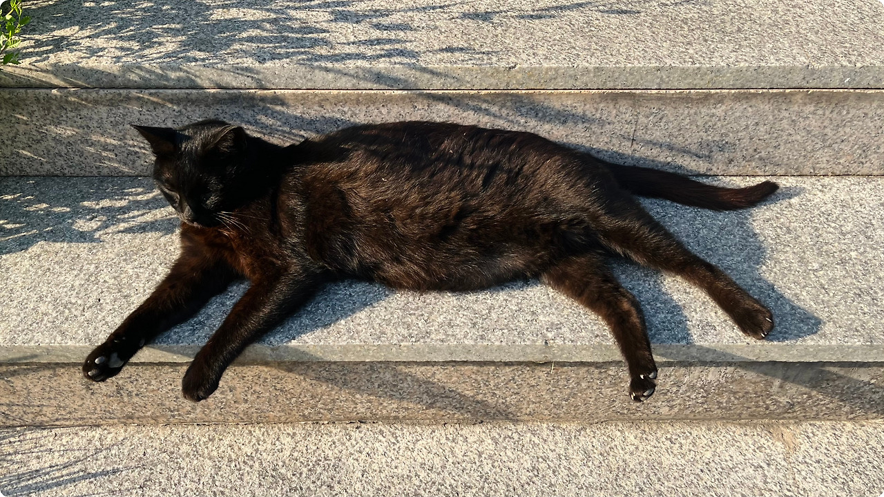TMI: 이 사진을 찍고 있을 때, 한 분이 다가오셔서 "루나~" 하시며 간식을 주시더군요. "이 고양이를 아세요?" 물었더니, 2018년인가 2019년부터 아기 시절의 루나를 보셨다는 이야기를 하셨어요. 그때부터 지금까지 가끔 마주치면 간식을 주시곤 한다고 하시더군요. 그 분이 말하길, 누군가가 "루나"와 "루나와 함께 다니는 루루"의 이름을 알려주었다고 합니다. 정말 유명한 고양이들이네요.