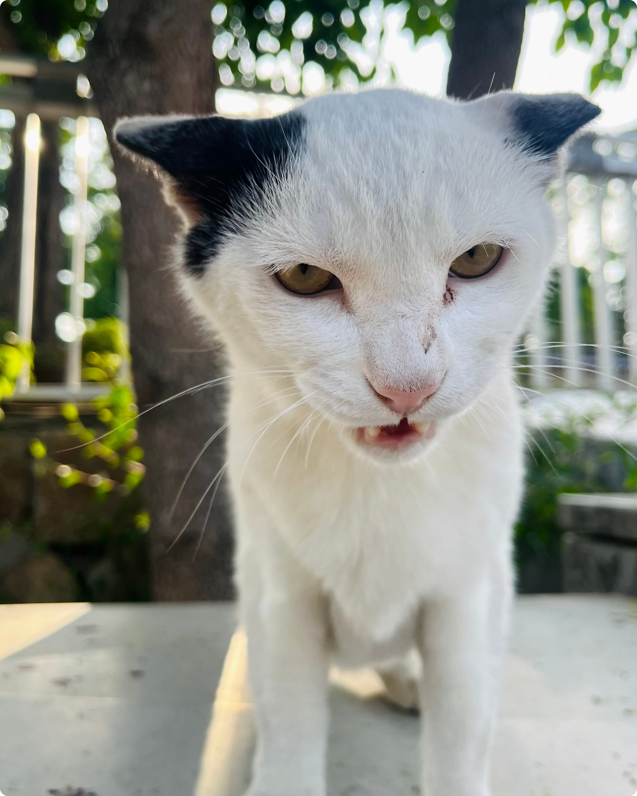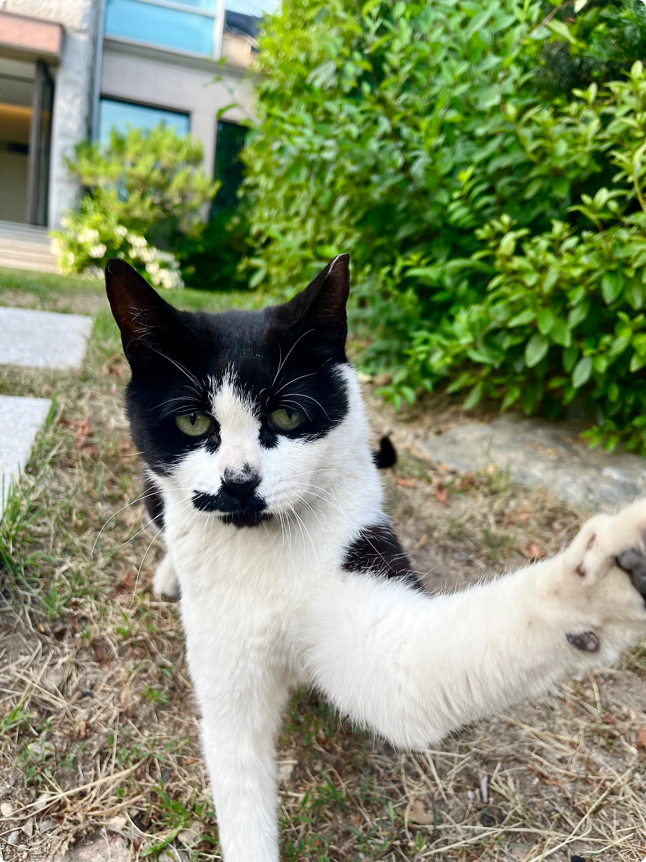그동안 제가 본 억울이는 독립적인 성격의 고양이였어요. 혼자만의 산책 시간을 잘 즐기는 고양이 같았죠. 어느 날에는, 사람들이 다니는 길을 혼자서 당당하게 걷는 억울이를 보고 정말 놀랐어요. 겁 없는 성격이 엄마냥이와는 정반대이지만, 확실한 건, 자기가 원할 때만 사람에게 다가가야 하는 것 같습니다. 가끔 사람이 귀찮아하는지 쿨하게 피하거나 고개를 돌리기도 해요. (제가 본 억울이가 그렇지, 다른 사람이 보면 또 다를 수도 있겠죠?)