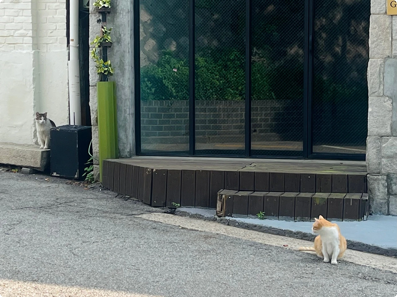 서울의 오래된 주택가, 골목과 골목이 겹쳐지는 낡은 벽돌 틈 사이. 그곳엔 늘 두 마리 고양이가 있었다. 오렌지색 털에 눈빛이 선명한 귤이, 그리고 하얀 뱃살에 갈색 무늬가 둥글게 번져 있는 커다란 고양이 밤이. 사람들은 언제부터였는지도 모르게, 그 둘을 항상 함께 봐왔다.