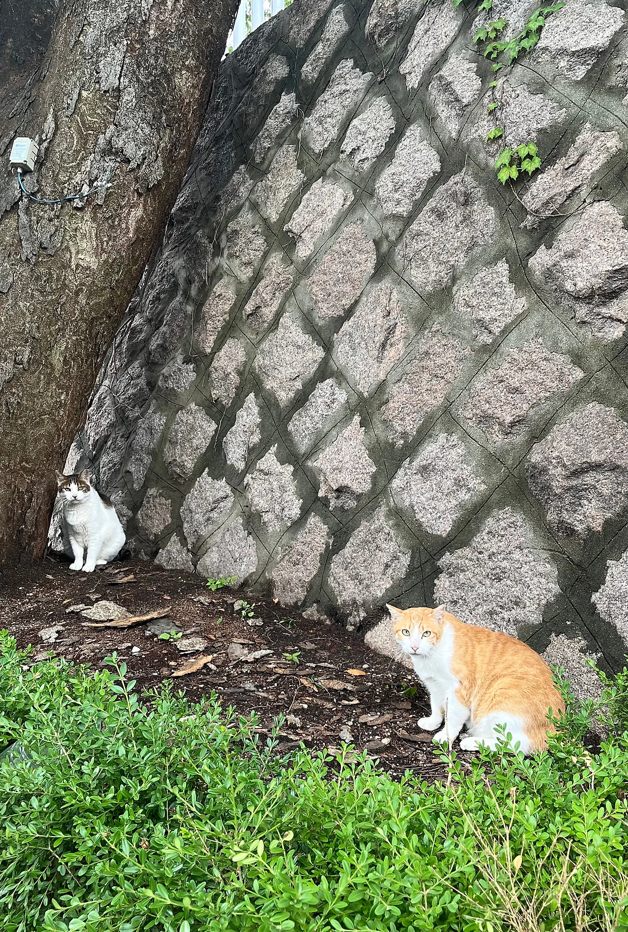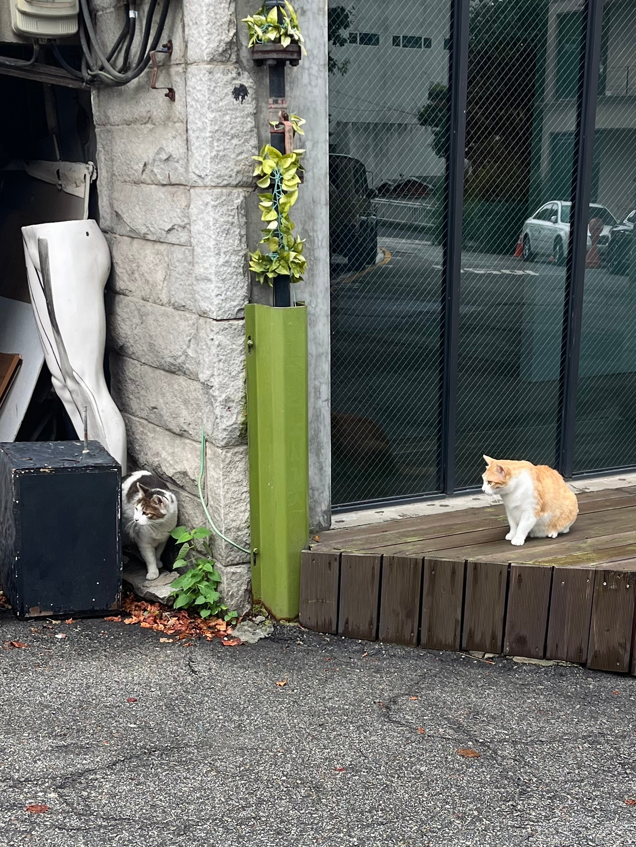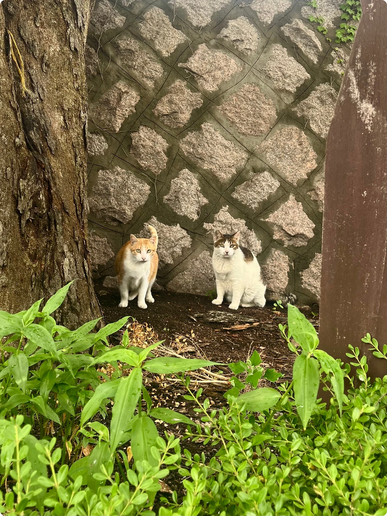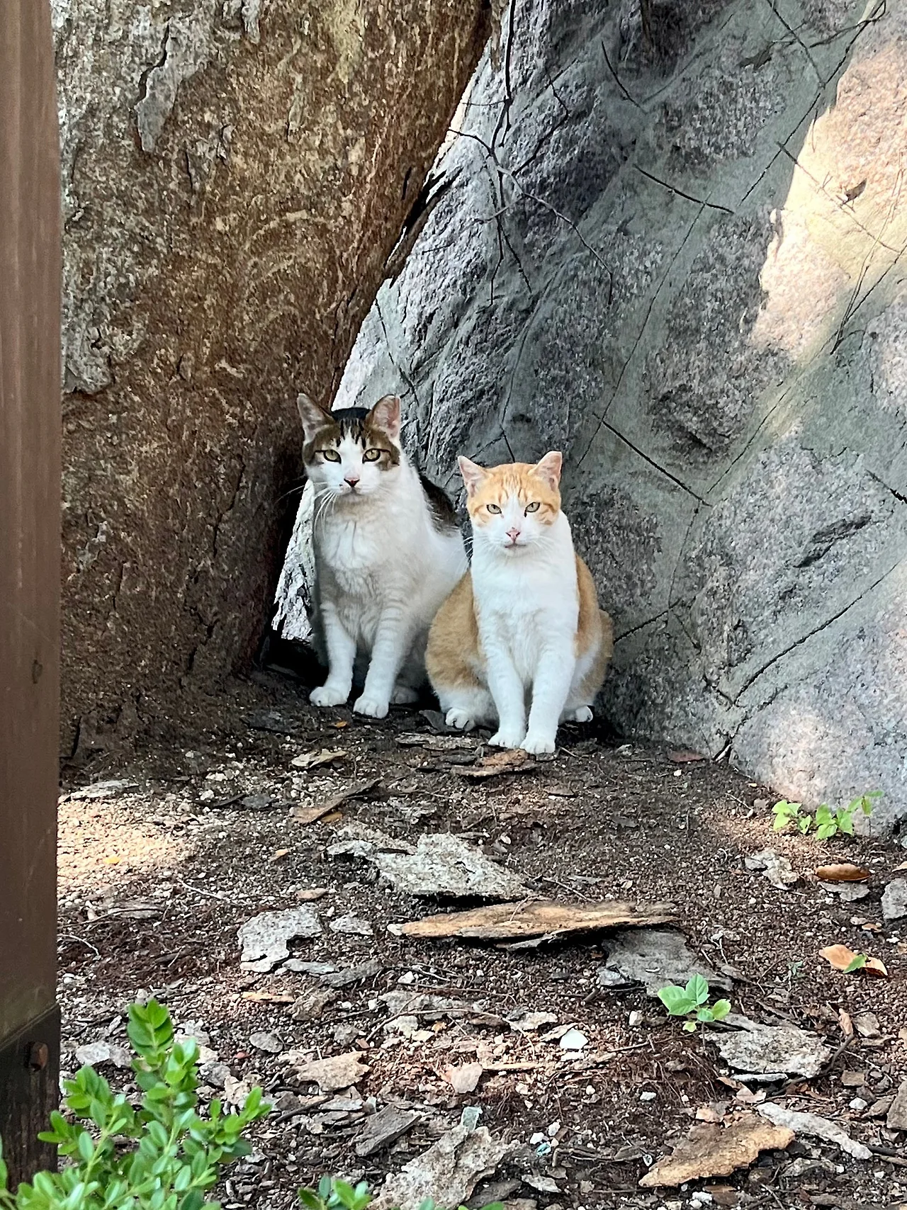 귤이와 밤이. 밤이든 낮이든 꼭 붙어 다니는, 이 동네의 단짝 고양이 두 마리.