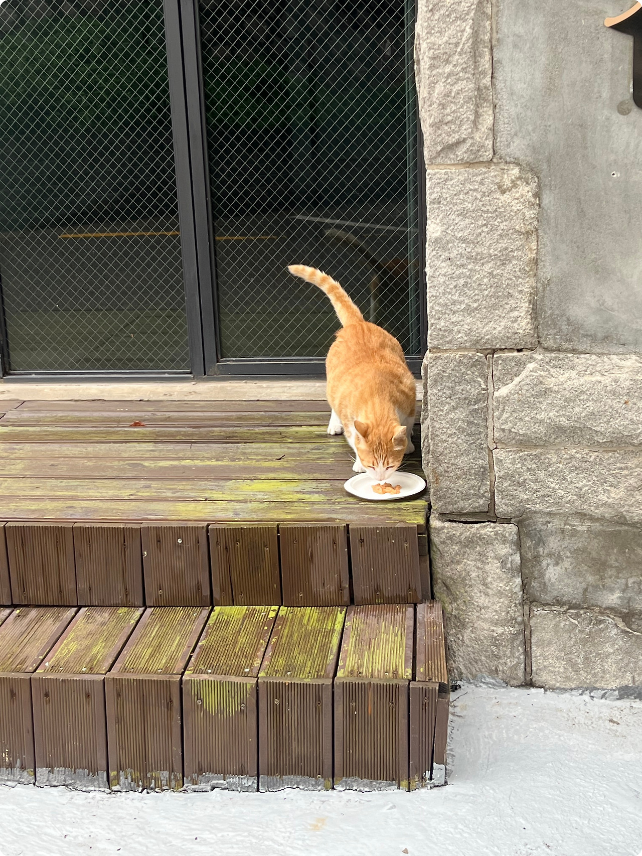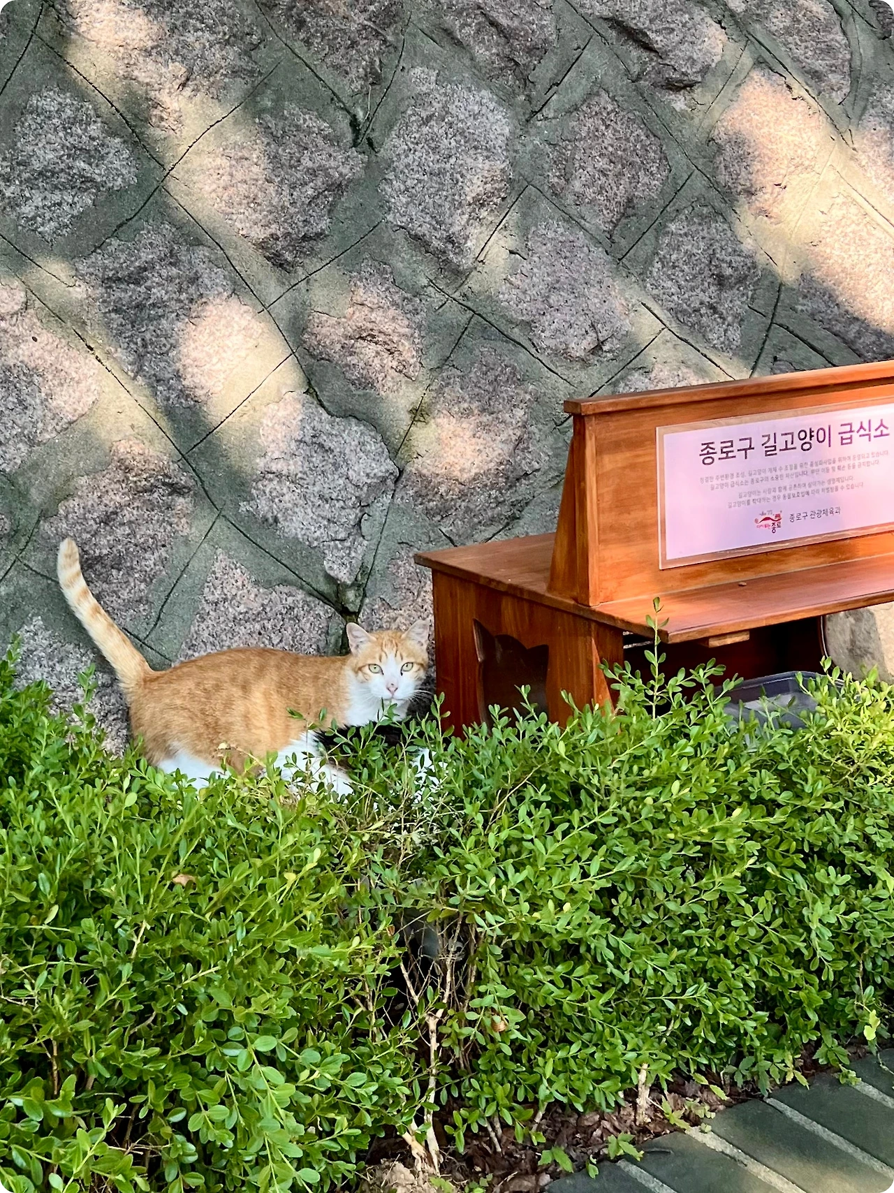 귤이가 앞장서서 밥을 먹기 시작하면, 밤이도 그제야 안심한 듯 뒤따라온다. 귤이가 낯선 사람 곁에서 느긋하게 앉아 있으면, 밤이도 멀찍이 그 모습을 지켜보다가 조금씩 가까이 다가온다. 마치 ‘괜찮아, 내가 옆에 있어’라고 말해주는 듯한 귤이의 존재 덕분에, 밤이는 매일의 작은 용기를 배워가고 있는 것 같다.