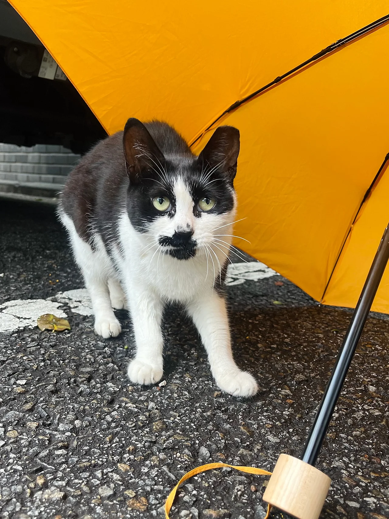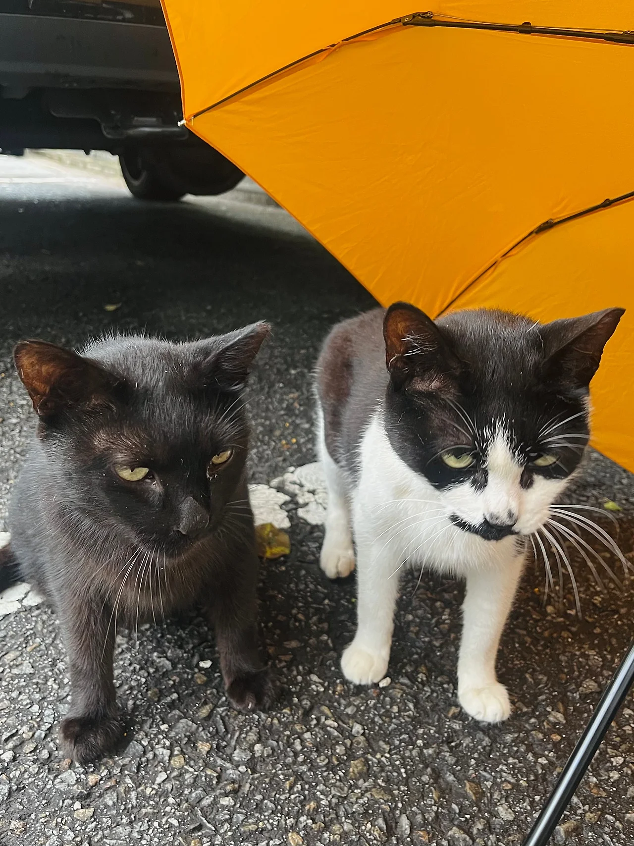 그리고 급식소에 가고는 싶지만 비는 맞기 싫은 엄마냥이.