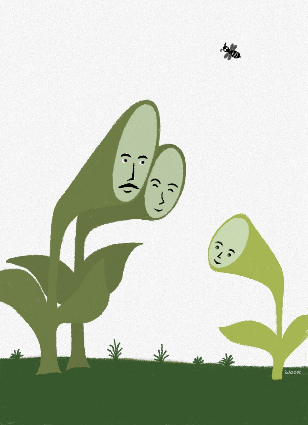 식충이의 기뻐하는 모습에, 아빠 식충이는 잎을 크게 부풀렸어요.