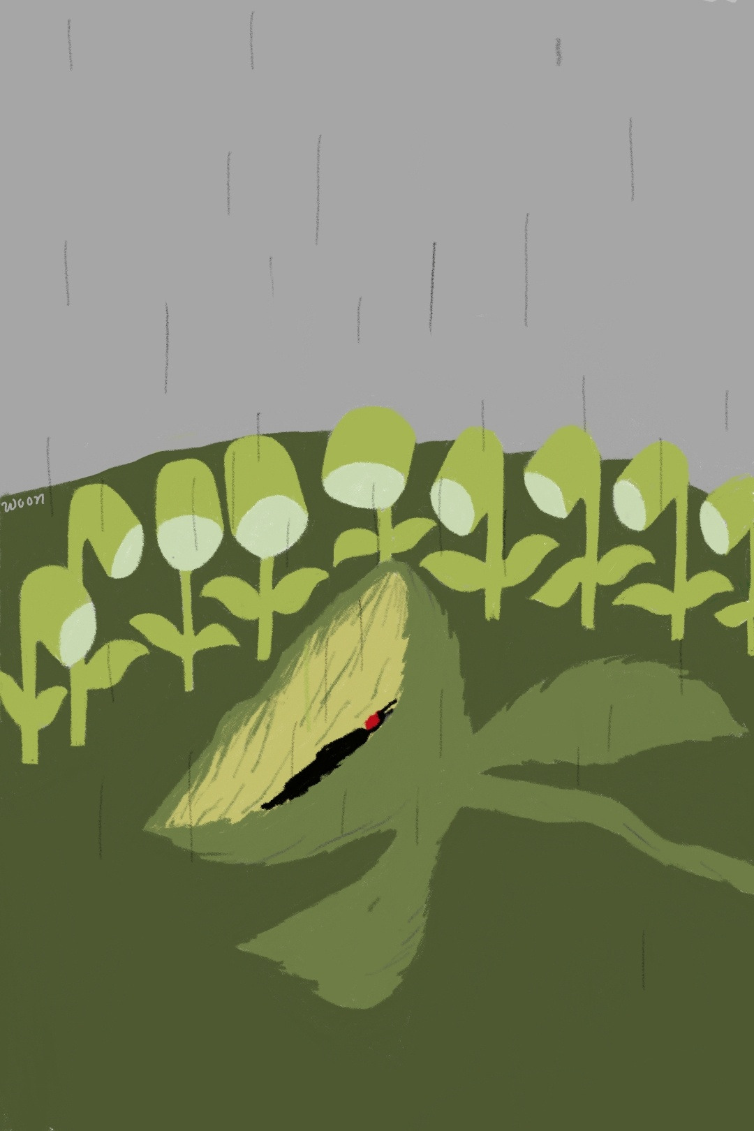 시들어가는 식충이를 위해 개똥벌레는 밤새 반딧불을 밝혔어요.