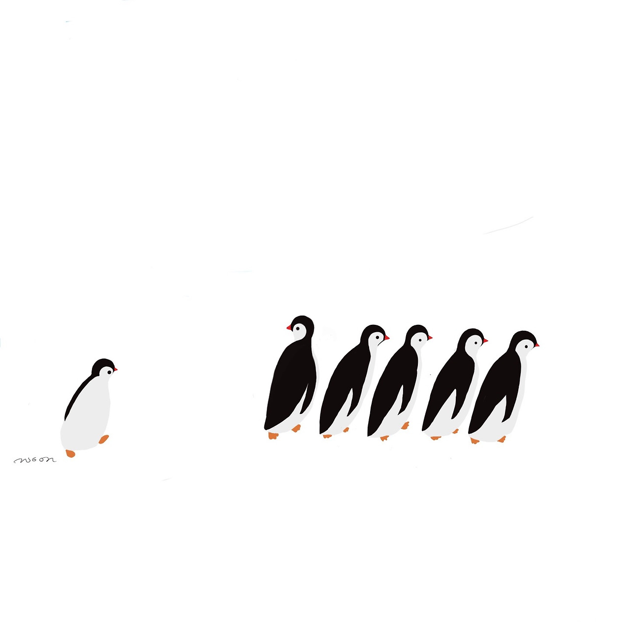 그래서 항상 아기 펭귄은 맨 뒤에서 친구들 꽁무니를 따라다녔다.