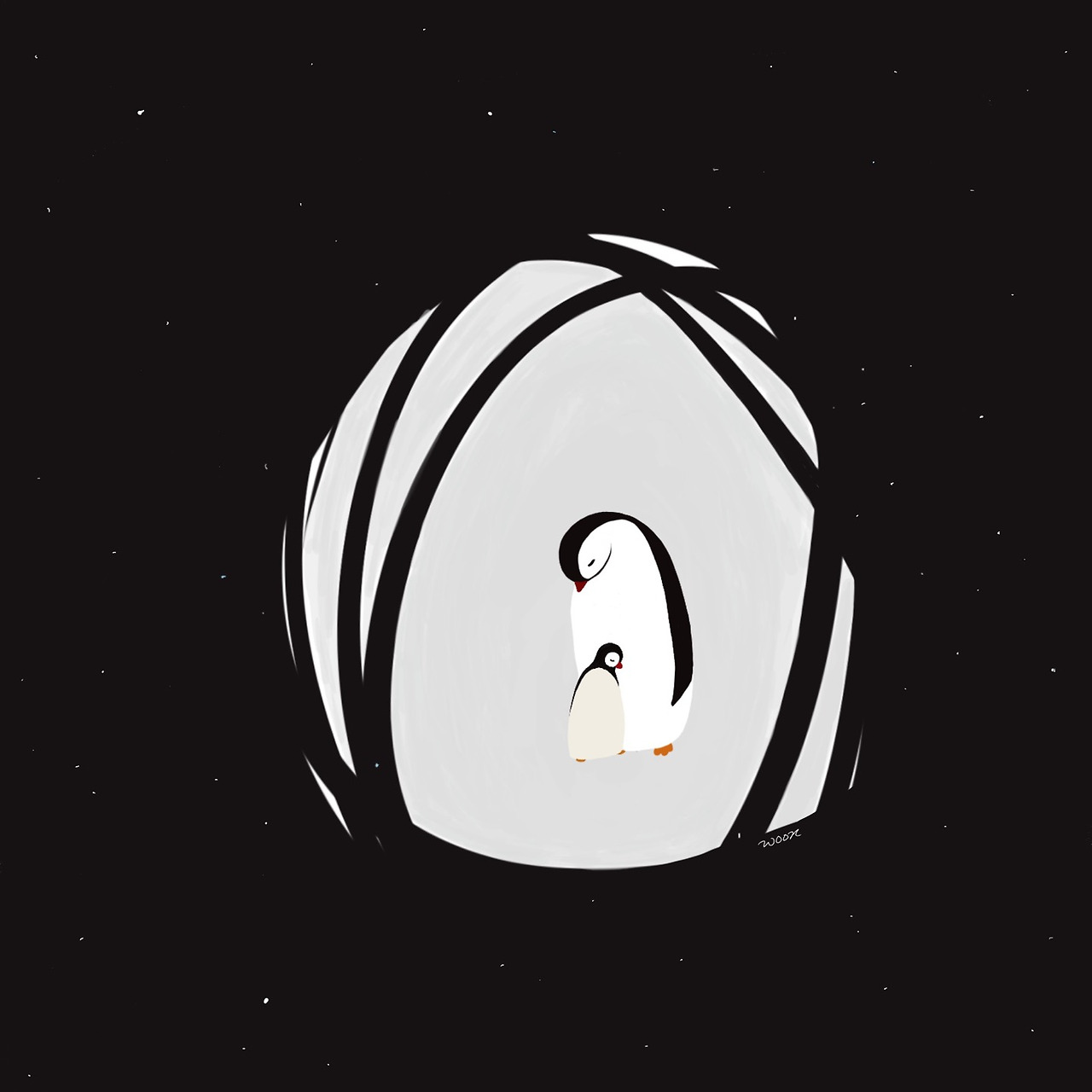 그렇지만 펭마는 알고 있었고, 잠자는 아기 펭귄을 품에 안고 눈물을 흘렸다.