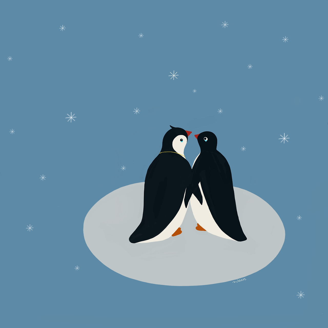 “어디 보자, 늠름한 펭귄이 되었구나!”
